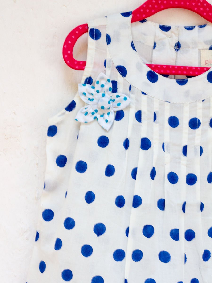 Indigo Polka PinTuck Block Printed Cotton Frock
