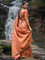 A saree that feels like autumn sunlight. The rust tone glows with warmth. Zari stripes add a touch of shimmer. The embroidered scallop lace softens the edges, adding grace to its earthy charm. It makes you feel grounded yet luminous.