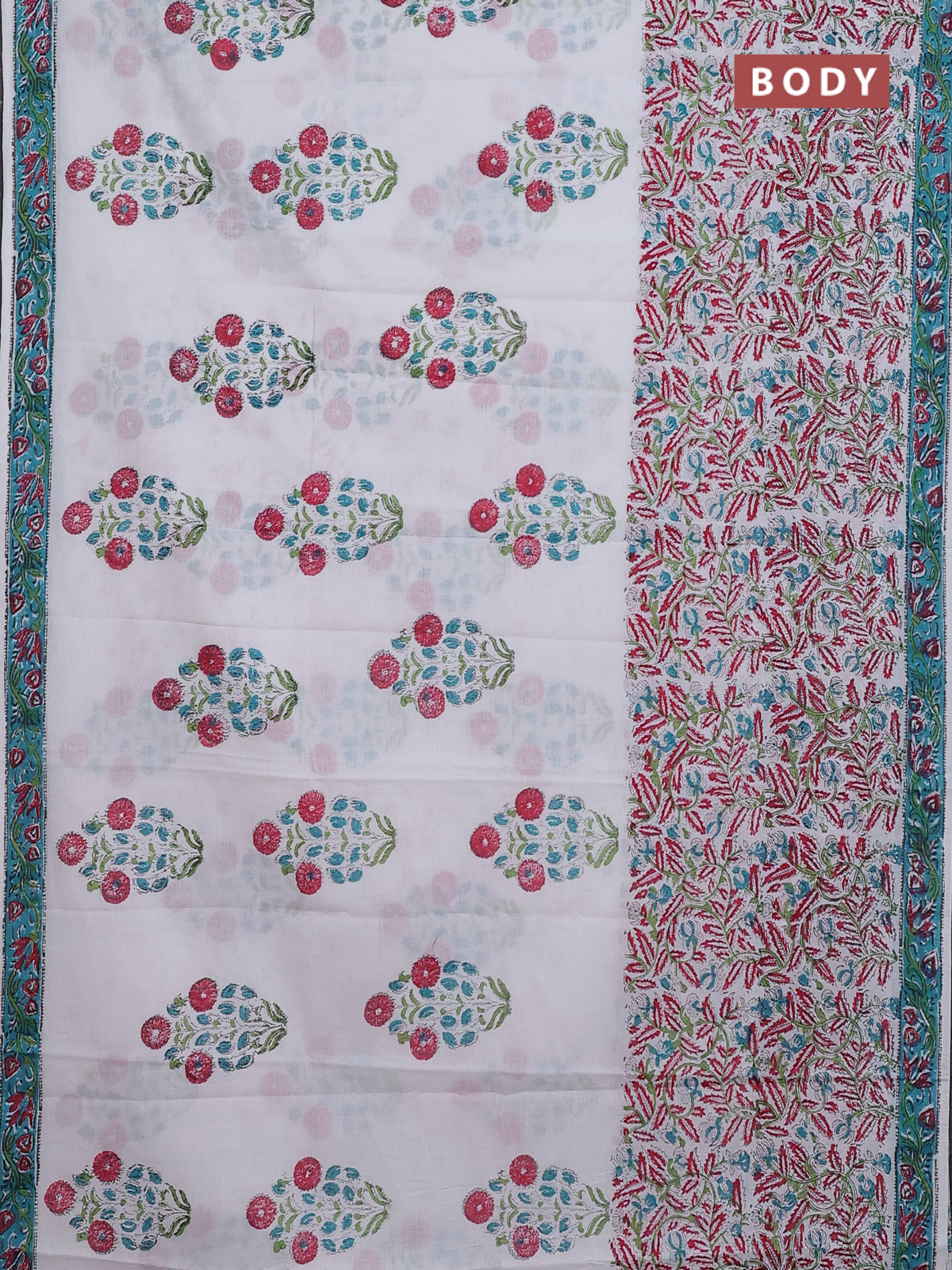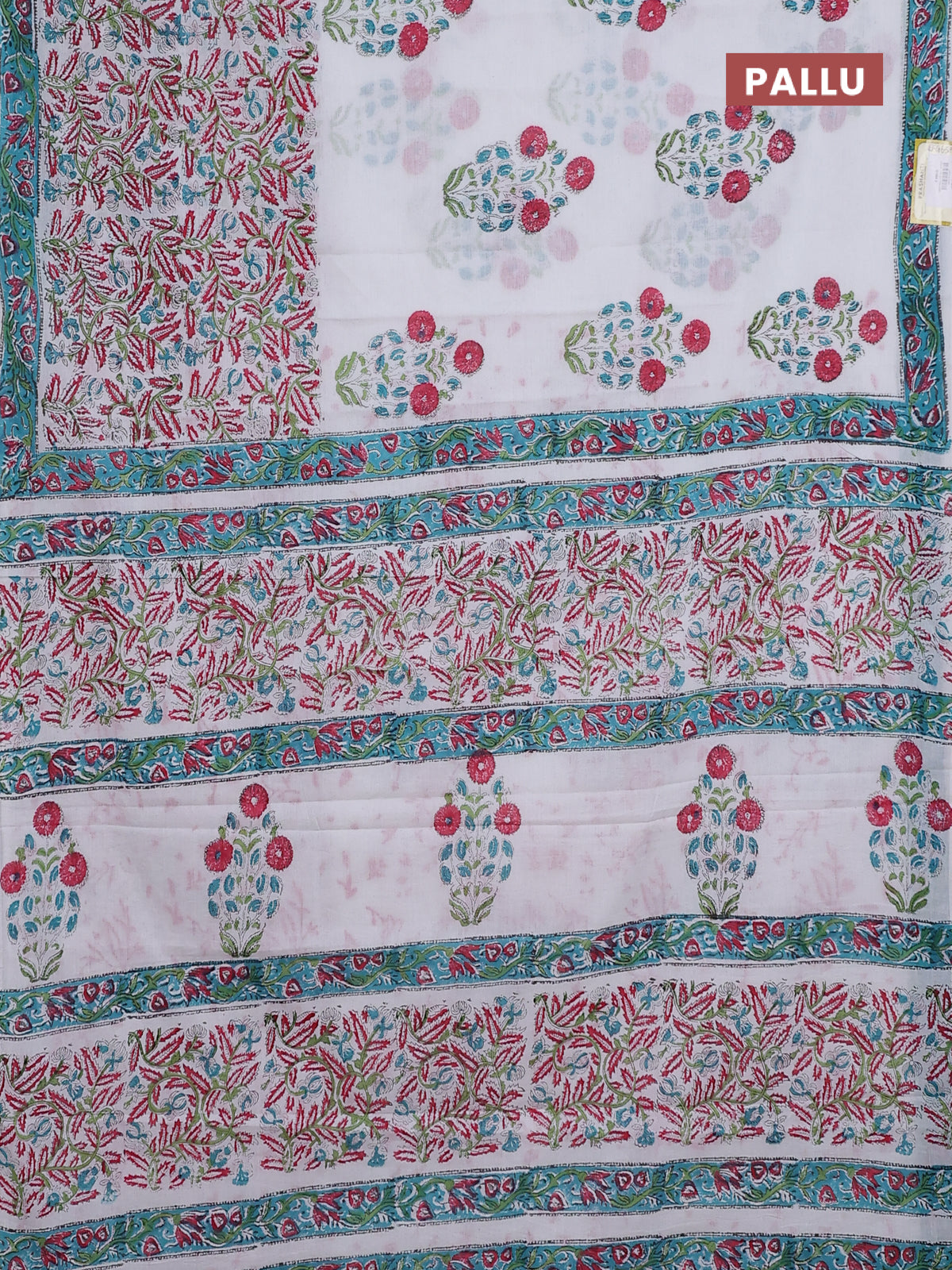 Jaipur cotton saree off white and teal blue with butta prints and printed border