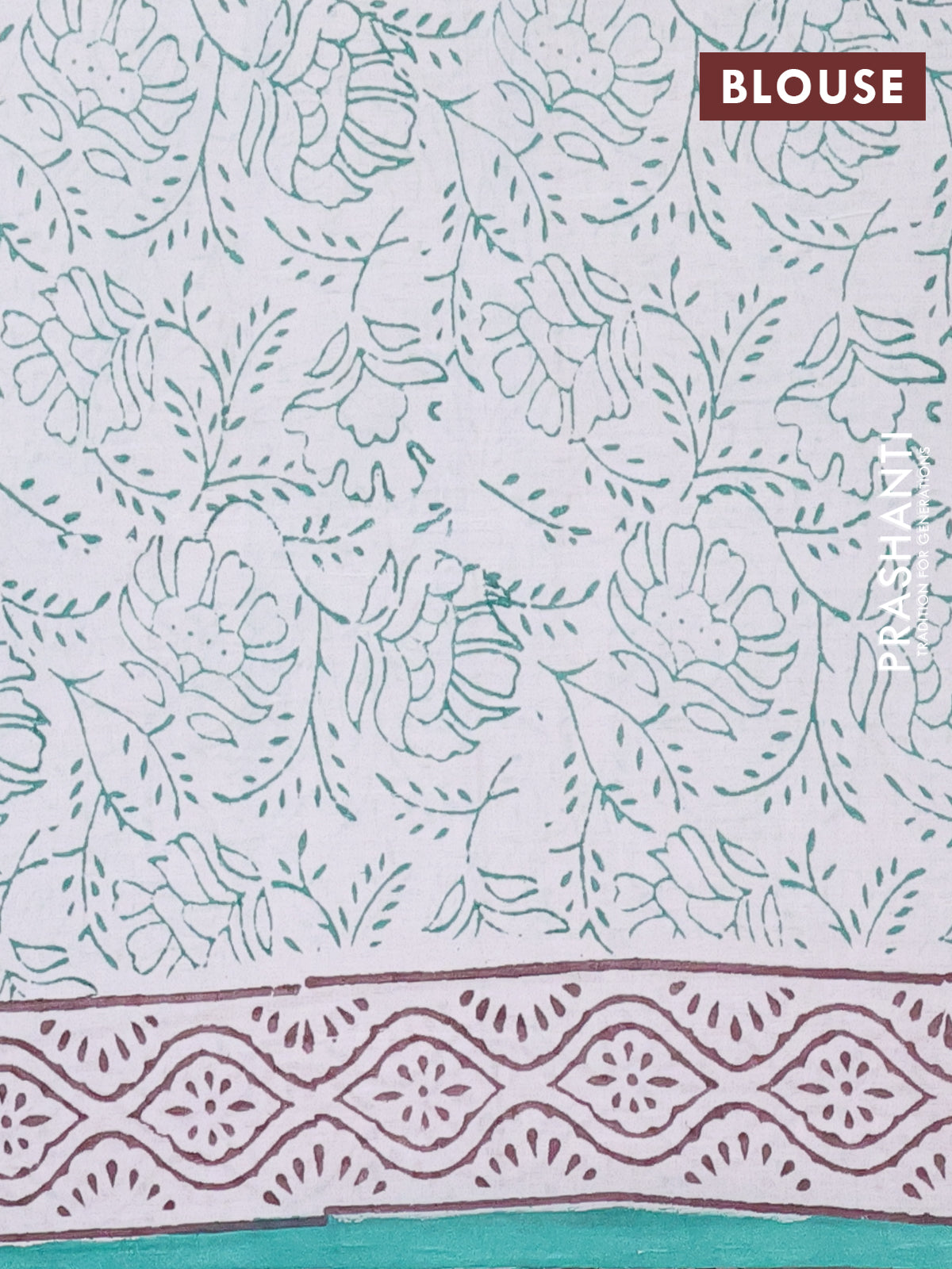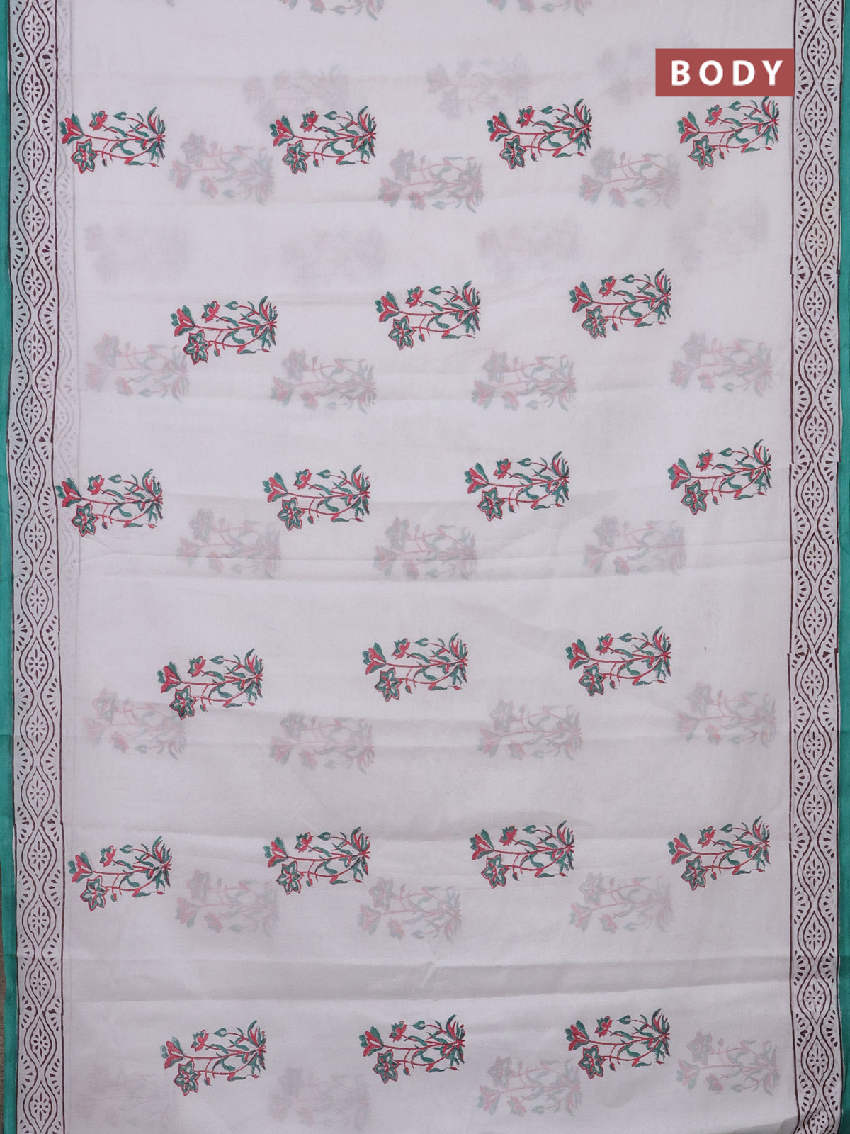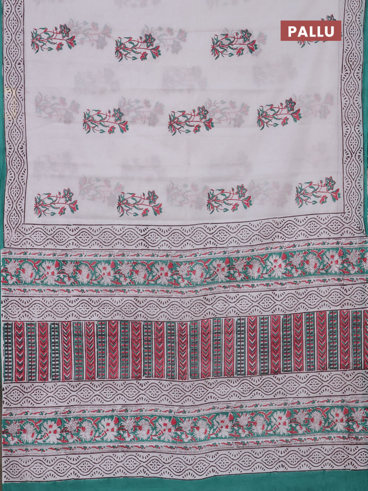 Jaipur cotton saree off white and teal blue with floral butta prints and printed border