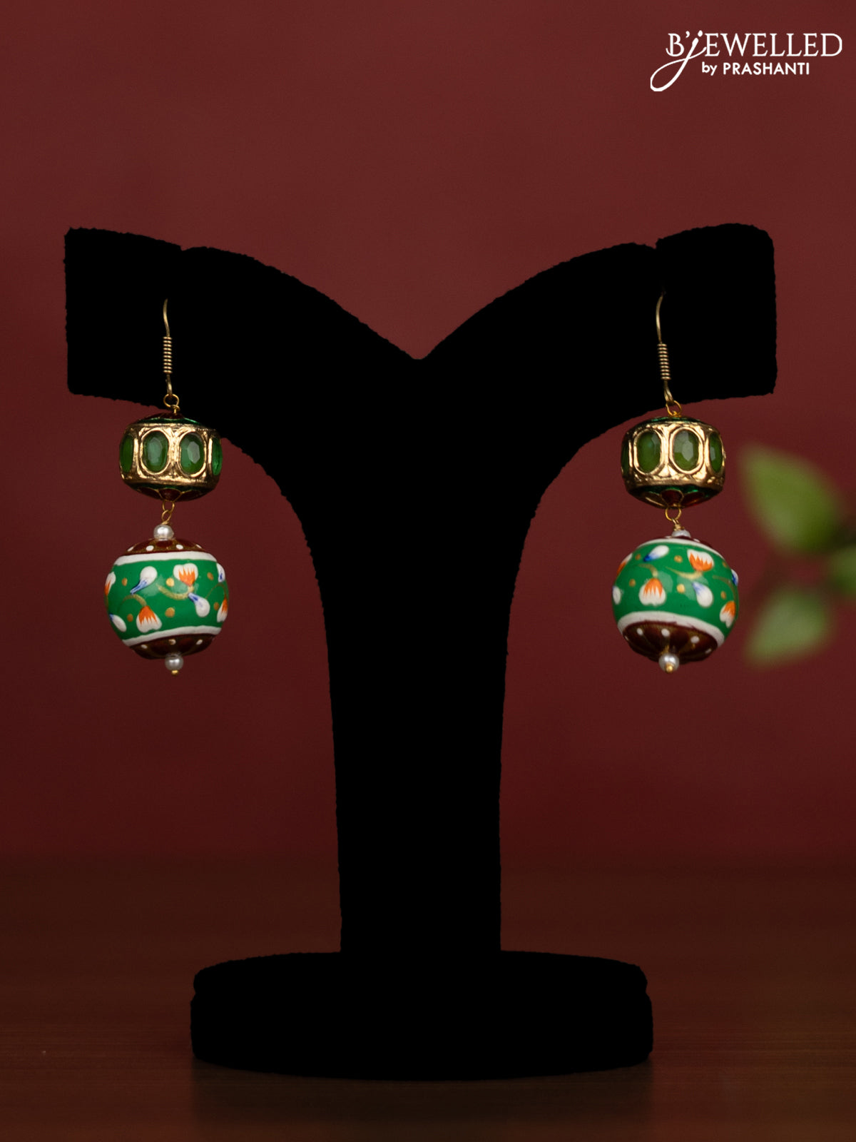 Jaipur crystal beaded green necklace with minakari balls and with earrings