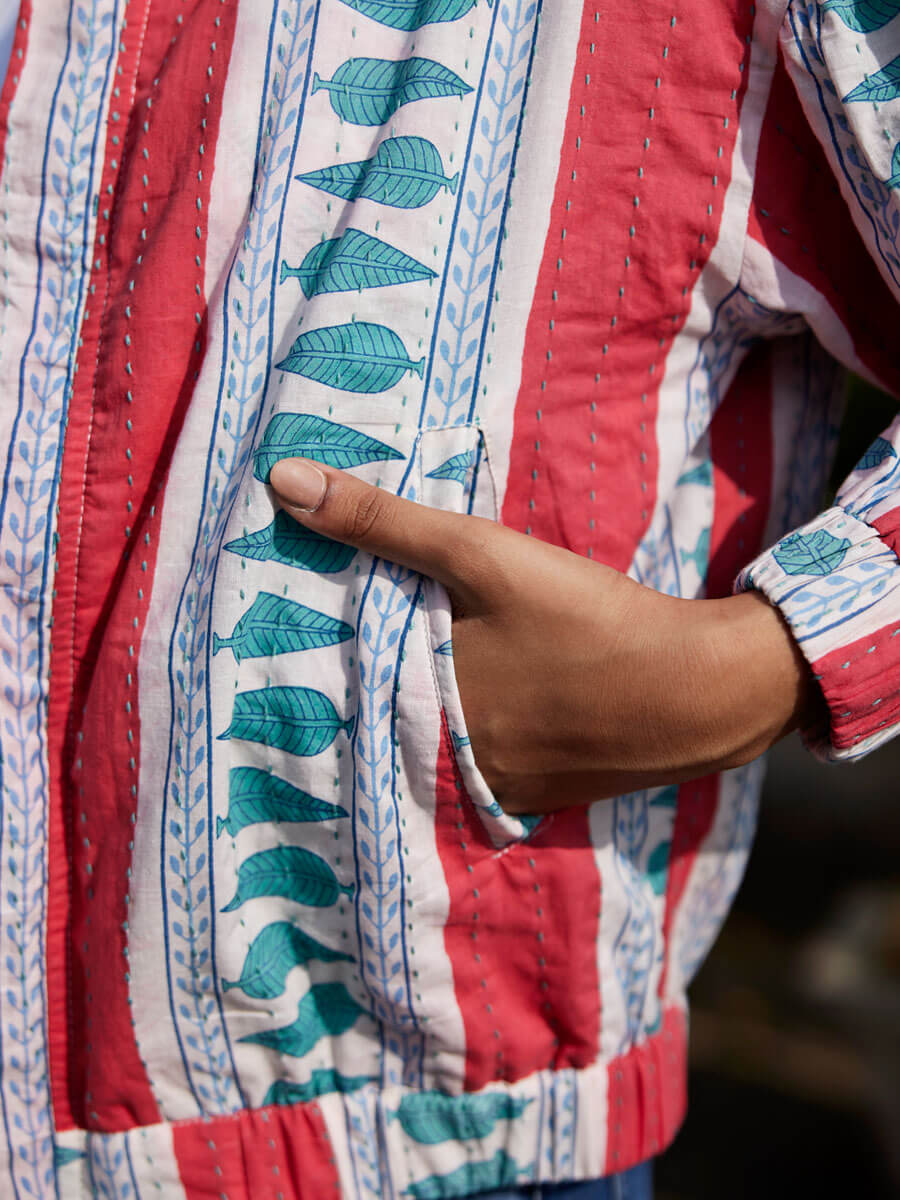 Jane Kantha Embroidered Block Printed Bomber Jacket
