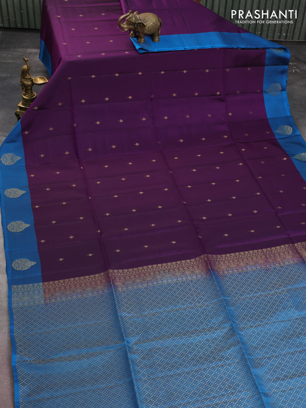 Kanchipuram soft silk saree purple and cs blue with zari woven buttas and zari woven butta border