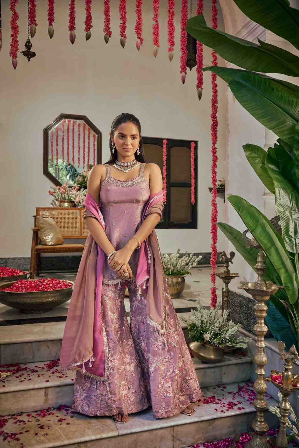Lavender Tissue Hand Embroidery Palazoo Set