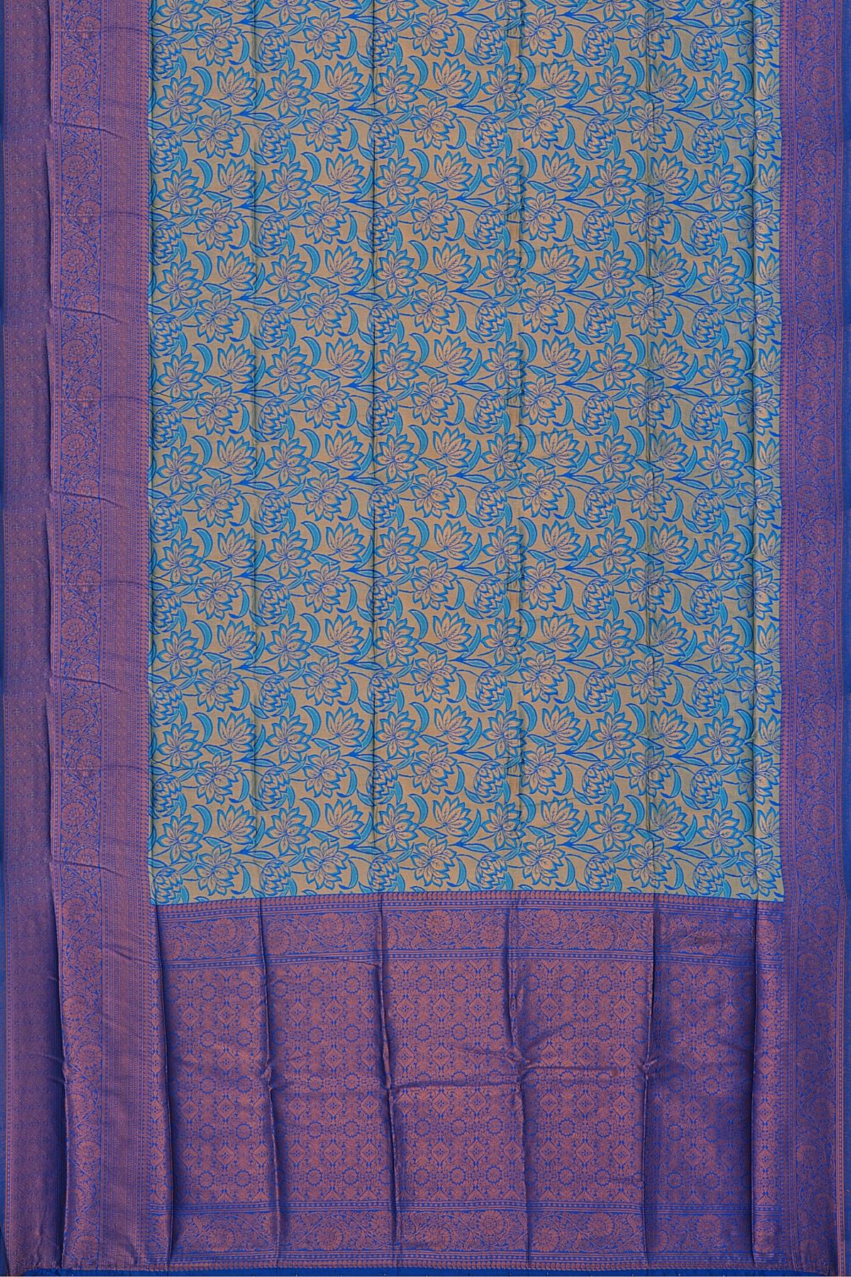 Latest LIGHT BLUE FLORALS SILK Saree with CONTRAST ZARI border. This saree comes with CONTRAST WITH BORDER SILK blouse.