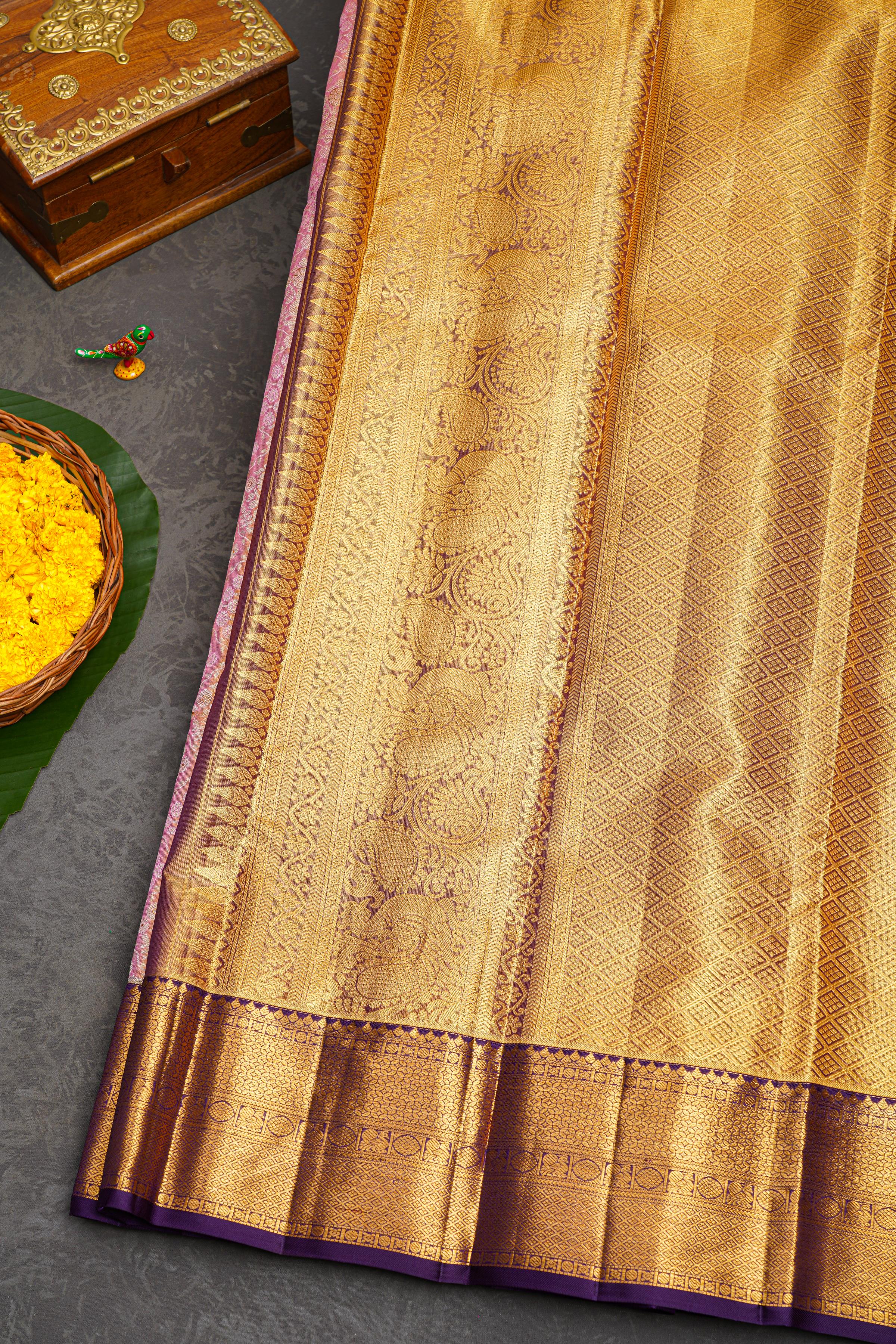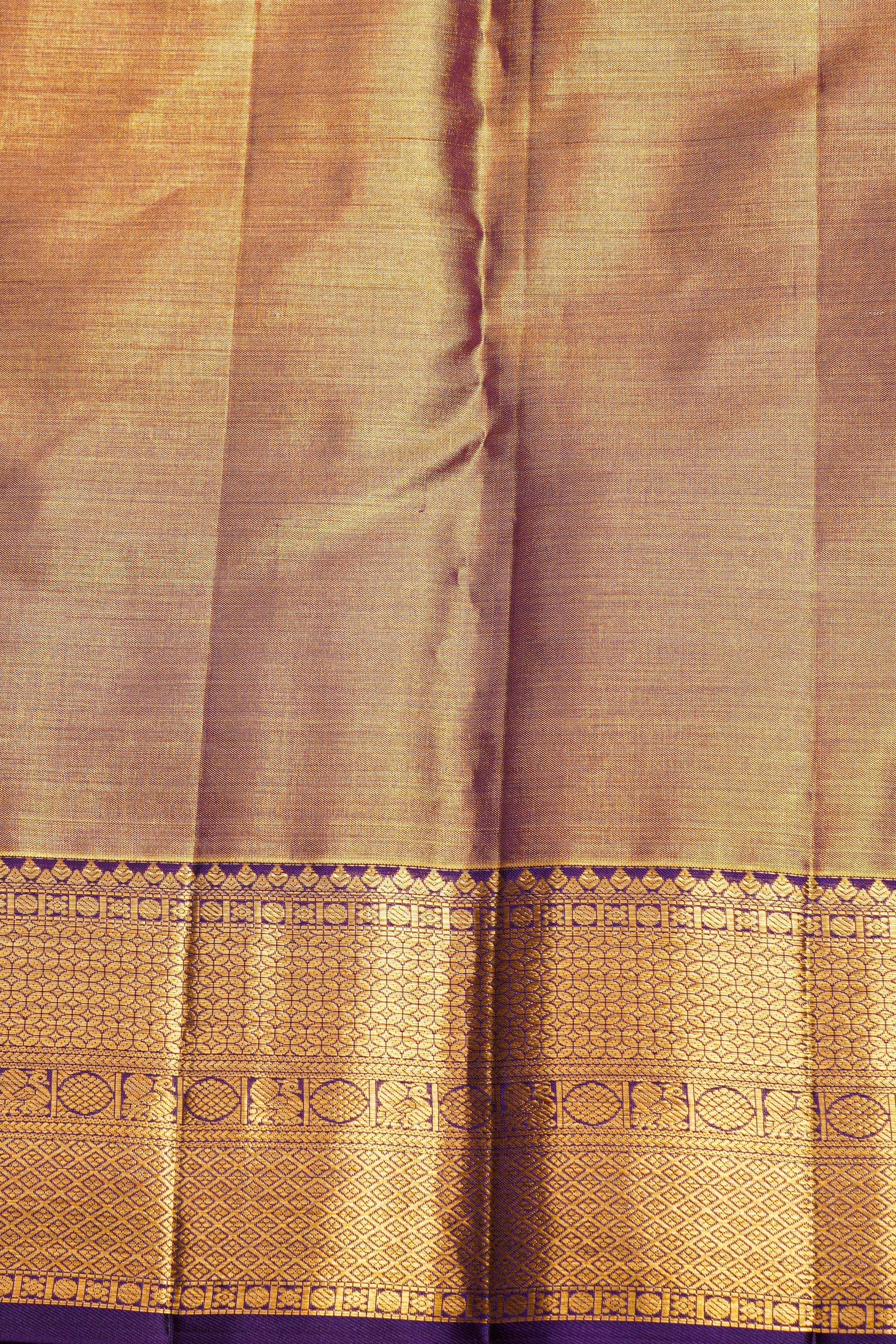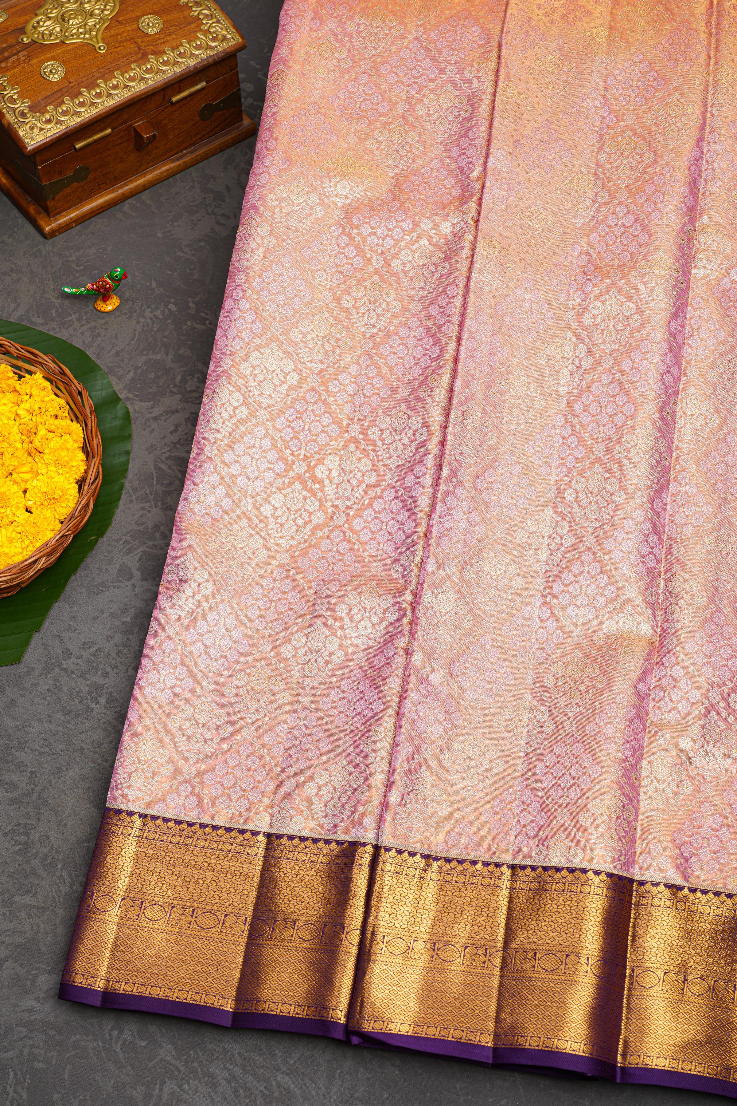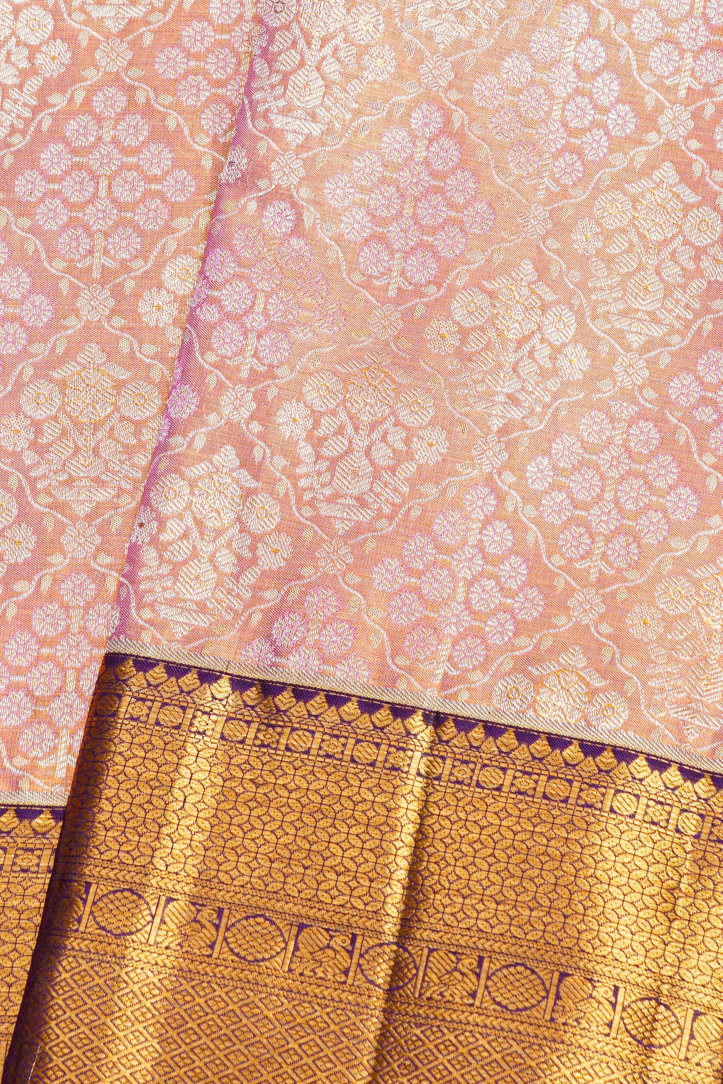 LIGHT PEACH and NAVY BLUE FLORAL JAAL SILK Saree with KANCHIPURAM