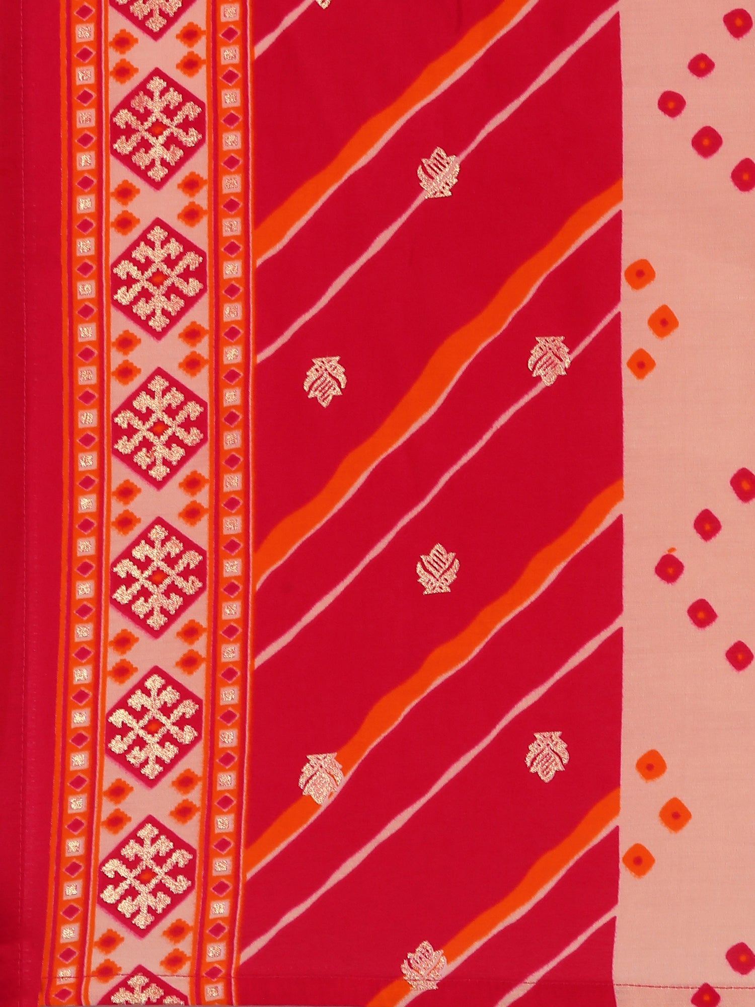 Elevate your ethnic wardrobe with this stunning Magenta Dola Silk Three Piece Set. Crafted from luxurious dola silk, this ensemble features a rich magenta hue that radiates elegance and sophistication. The three-piece collection includes beautifully coordinated pieces designed to work seamlessly together, offering you versatile styling options for weddings, festivals, and special occasions.