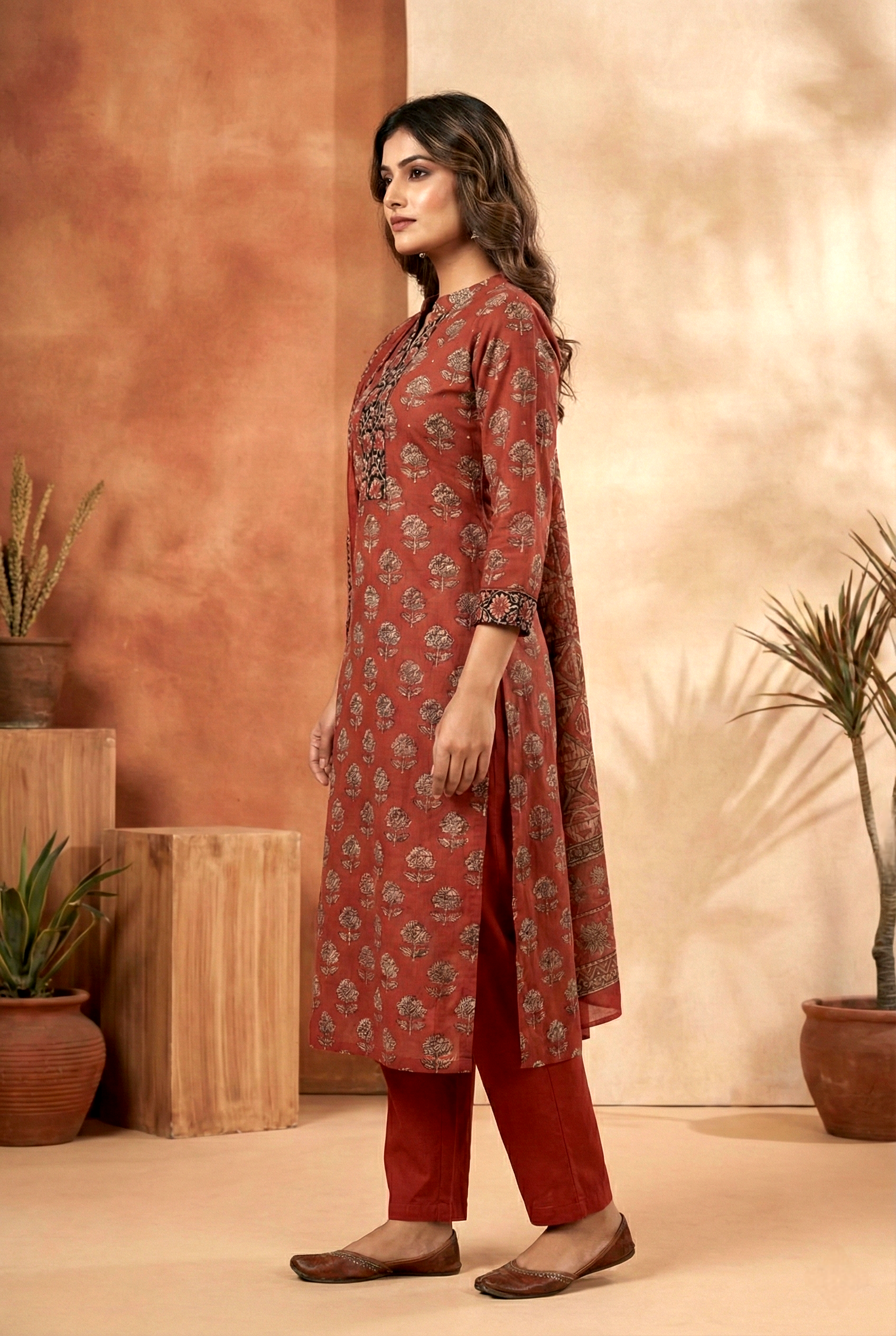 Elevate your everyday wardrobe with this stunning maroon cotton printed three-piece set, designed for the modern Indian woman. Crafted from breathable, premium cotton fabric, this versatile ensemble combines comfort with timeless style. The intricate printed detailing adds a touch of sophistication to each piece, making it perfect for casual outings, family gatherings, or relaxed workdays. The coordinated three-piece design ensures effortless styling—simply mix and match to create multiple looks from one investment. Soft against the skin and easy to maintain, this set delivers both elegance and practicality. Embrace comfort without compromising on style with this essential addition to your collection.