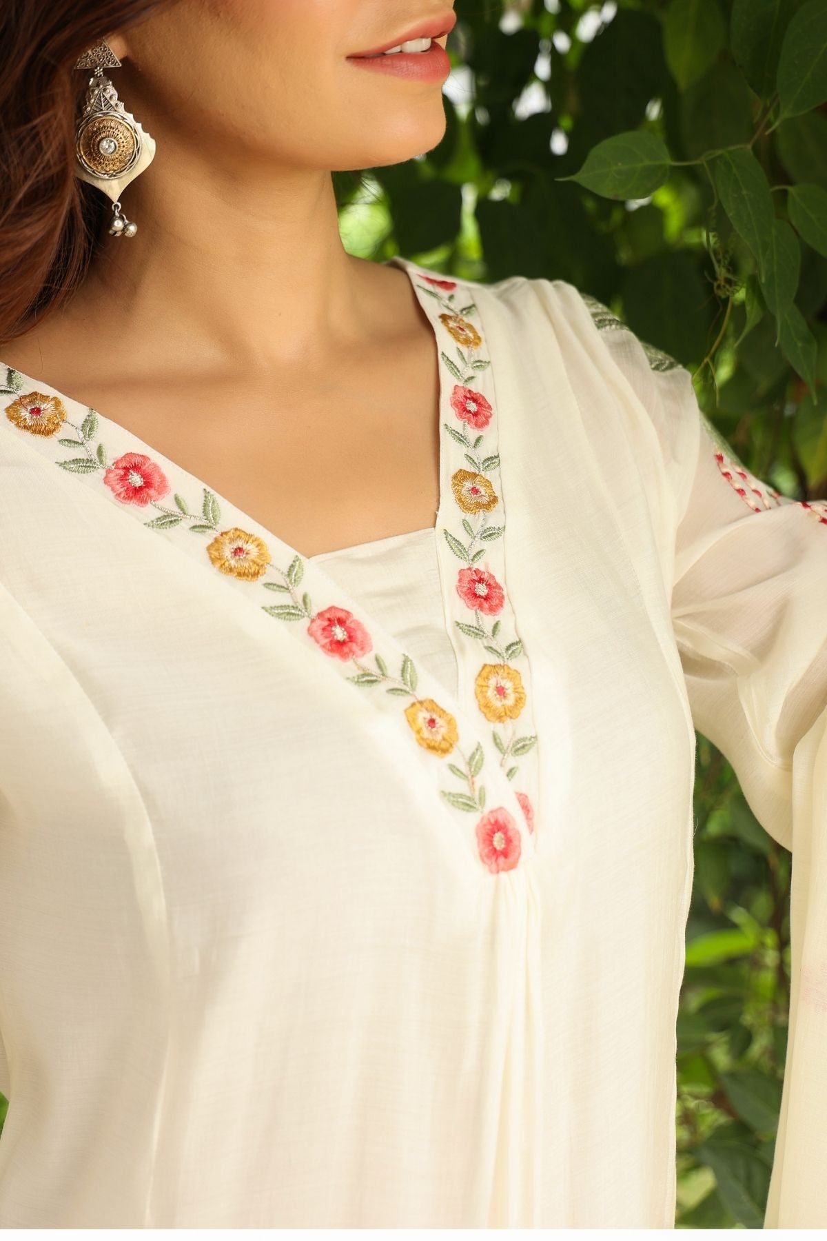Elevate your everyday style with this graceful Mul Kurti with Light Floral Embroidery. Made from soft, breathable mul fabric, it features delicate floral embroidery that adds a touch of elegance. Perfect for work, casual outings, or festive get-togethers, this kurti blends comfort with understated charm.