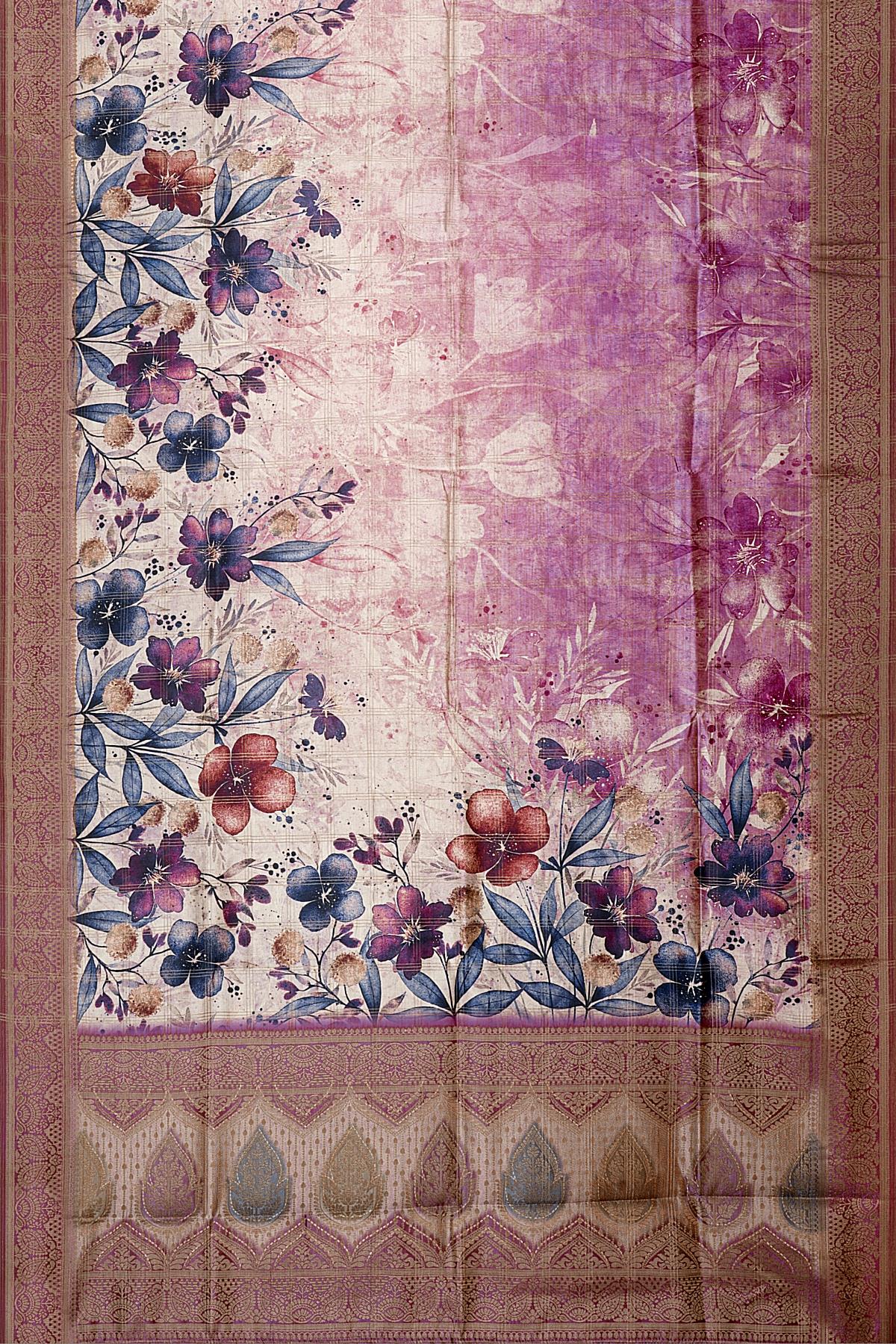 MULTI and PURPLE CHECKS & FLORALS TUSSAR SILK Saree with FANCY