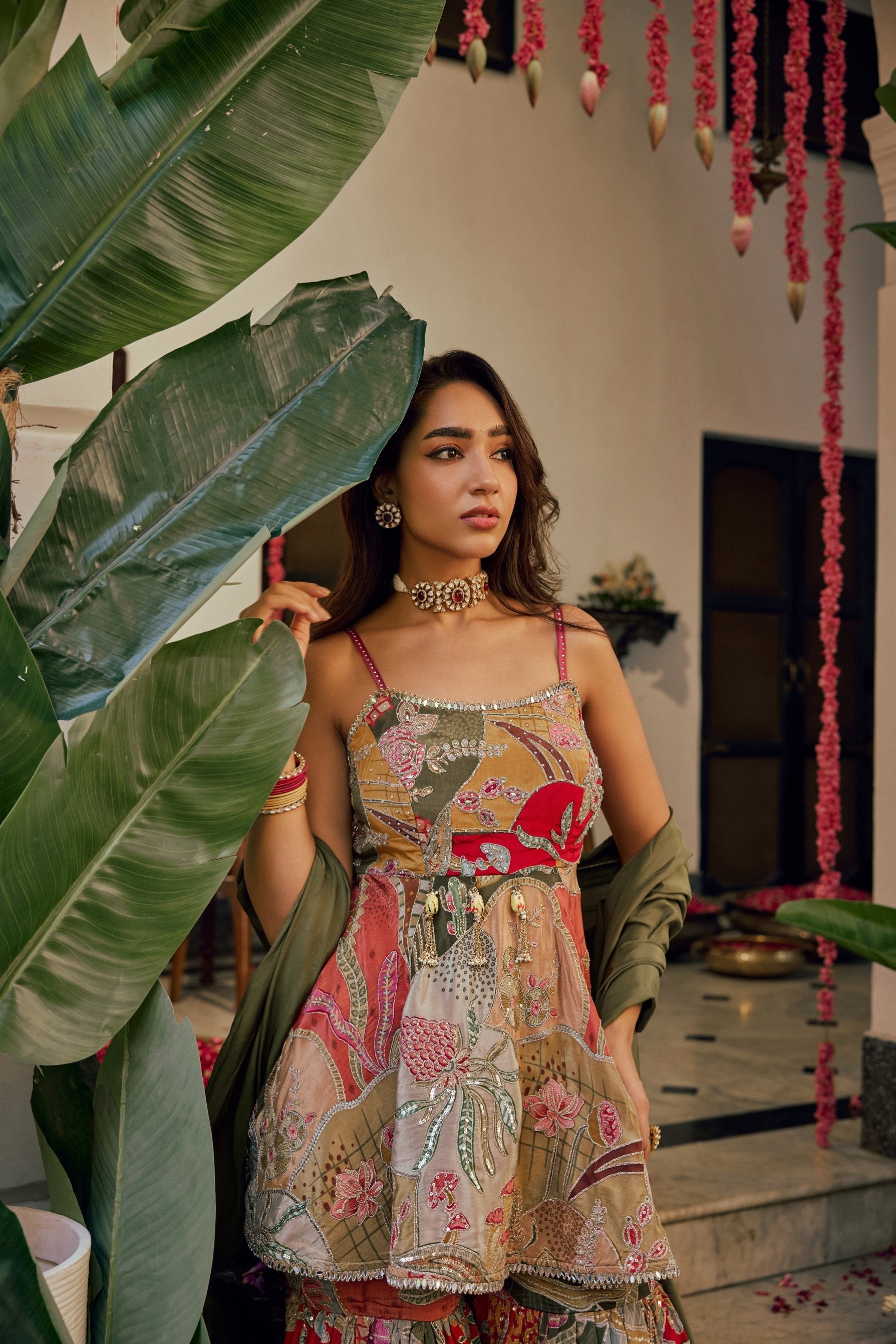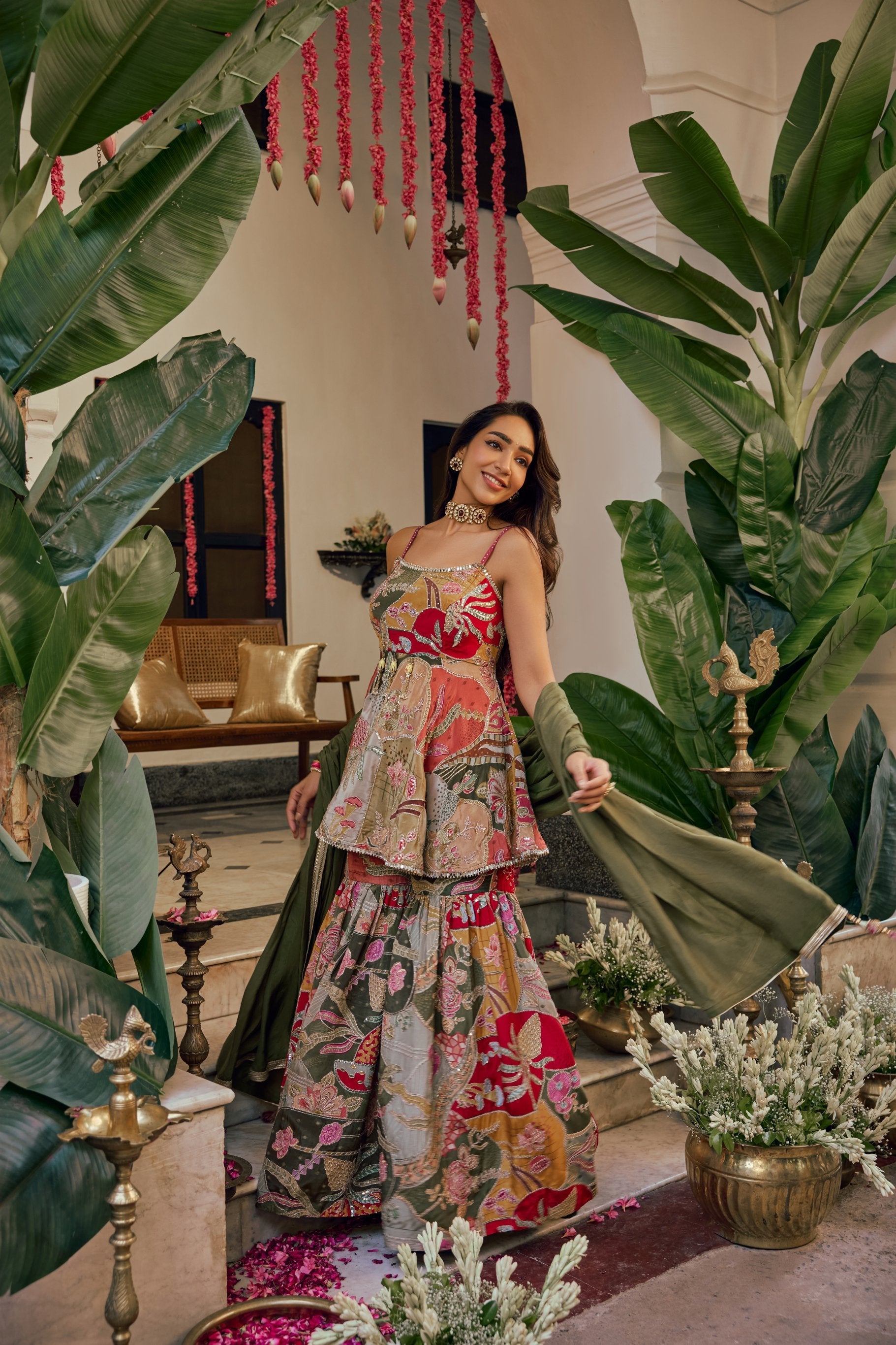 Elevate your wardrobe with this Multi Chinnon Printed Peplum Set paired with palazzo pants. Crafted from lightweight chinnon fabric, it offers a graceful drape and comfortable fit. The sophisticated peplum silhouette adds a flattering shape, while the vibrant print enriches your style with elegance and charm. Perfect for festive occasions or refined casual wear, this set combines comfort and style seamlessly.