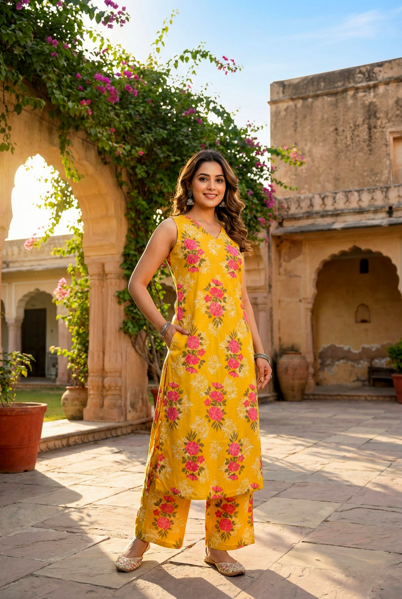 Embrace effortless elegance with this stunning mustard cotton two-piece set, featuring vibrant floral digital prints that capture nature's beauty. Crafted from breathable cotton, this versatile ensemble offers comfort for everyday wear while making a bold style statement. The coordinated pieces work seamlessly together or separately, giving you endless outfit possibilities. Perfect for casual outings, festive occasions, or relaxed weekends, this set combines contemporary design with traditional charm. Elevate your wardrobe with a piece that celebrates color, comfort, and timeless appeal.