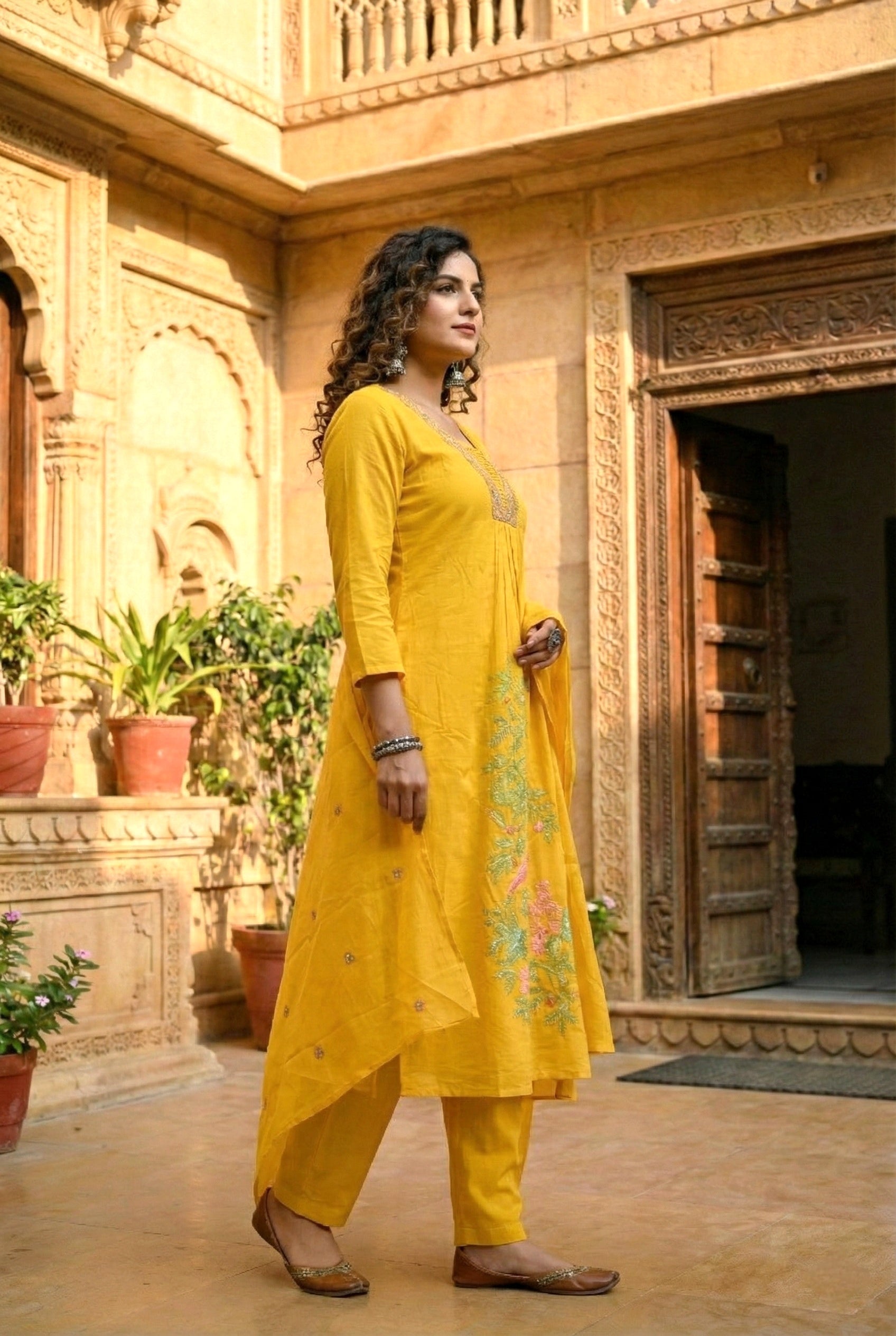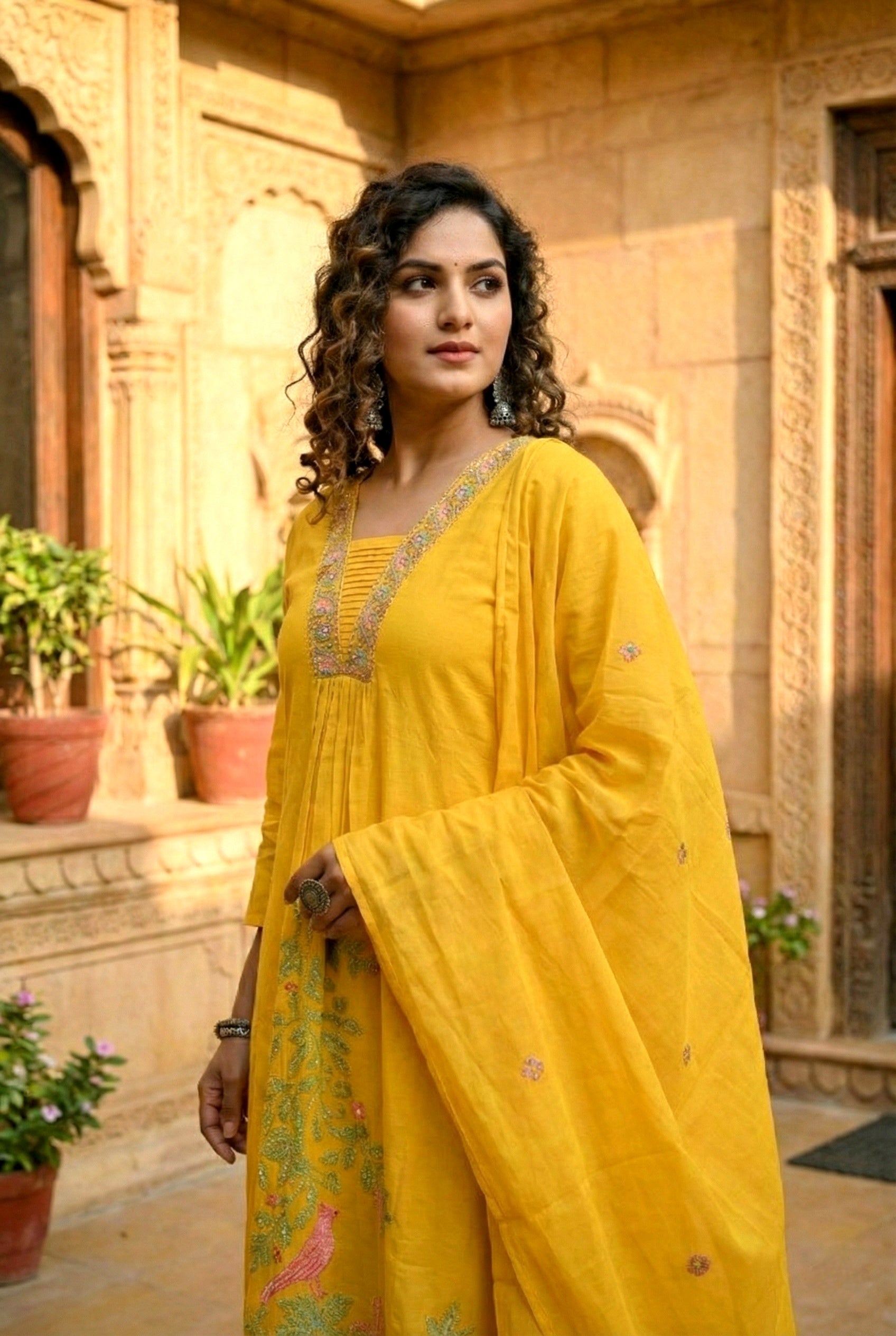 Elevate your ethnic wardrobe with this stunning mustard cotton suit set, where traditional craftsmanship meets contemporary style. Each piece features intricate hand embroidery and shimmering sequin detailing that catches the light beautifully, making it perfect for festive occasions, celebrations, or when you want to feel truly special. The soft cotton fabric ensures comfort throughout the day, while the rich mustard hue complements a variety of skin tones. This versatile ensemble works wonderfully for weddings, parties, or cultural events, giving you that polished, put-together look that turns heads. Embrace the artistry of handcrafted fashion with a suit set that tells a story of skill and dedication.