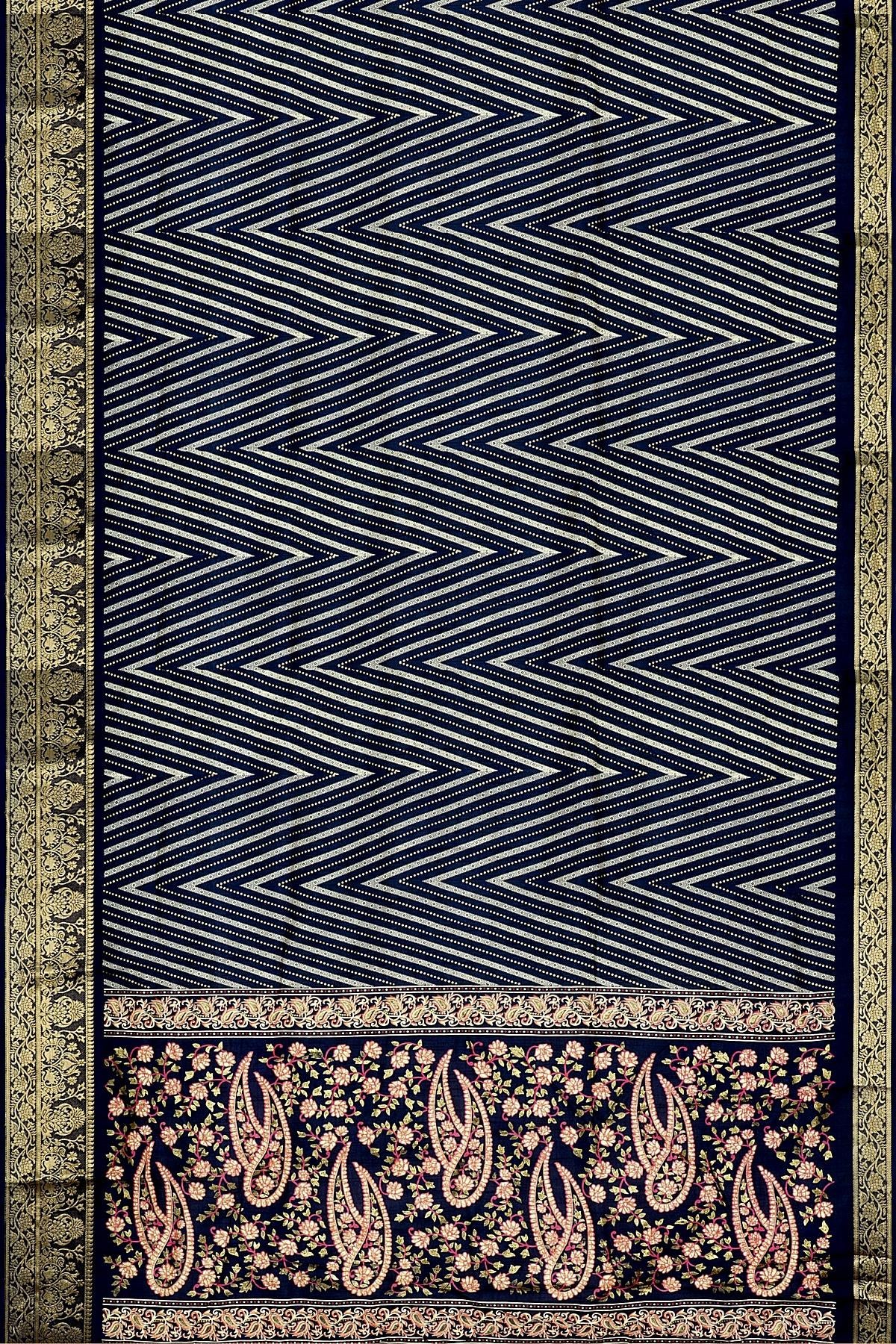 NAVY BLUE and OFF WHITE ZIG ZAG SILK BLEND Saree with FANCY