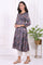 Navy Blue Floral Printed Beadwork Modal Satin A-line Kurta