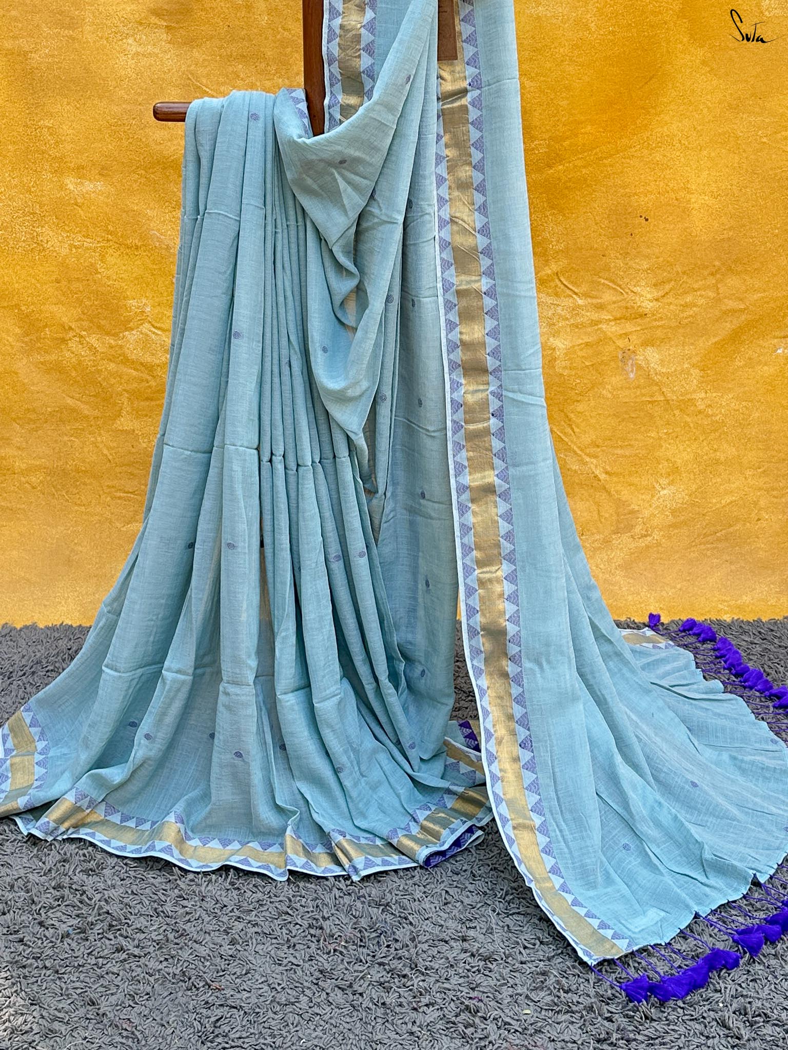The mul cotton is what we call ˜made in heaven at Suta. Known in West Bengal as mul mul, the fabric is buttery soft and delicately beautiful. The weave of this fabric is very fine, and this lends a very fluid texture to it that makes draping it a breeze. It is truly like a hug that wraps you in its love!