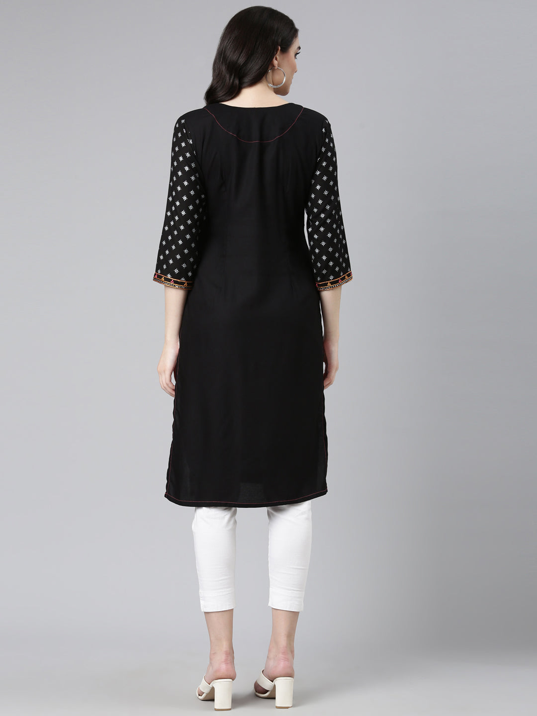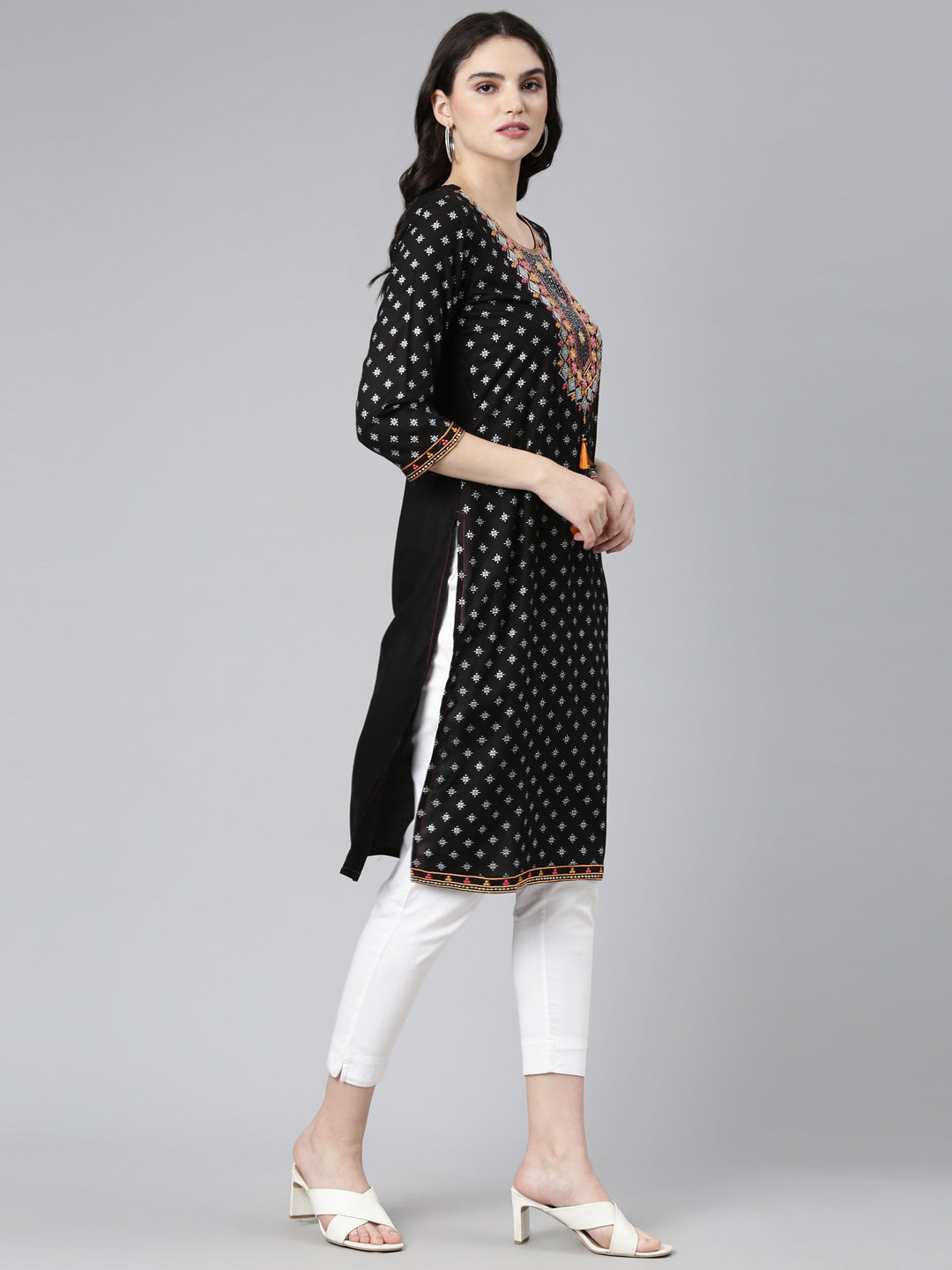 Neeru's Black Regular Straight Printed Kurta The Perfect Pick For A No-Fuss Yet Chic Look That'Ll Keep You Looking Good And Feeling Comfy. Get Ready To Turn Heads!