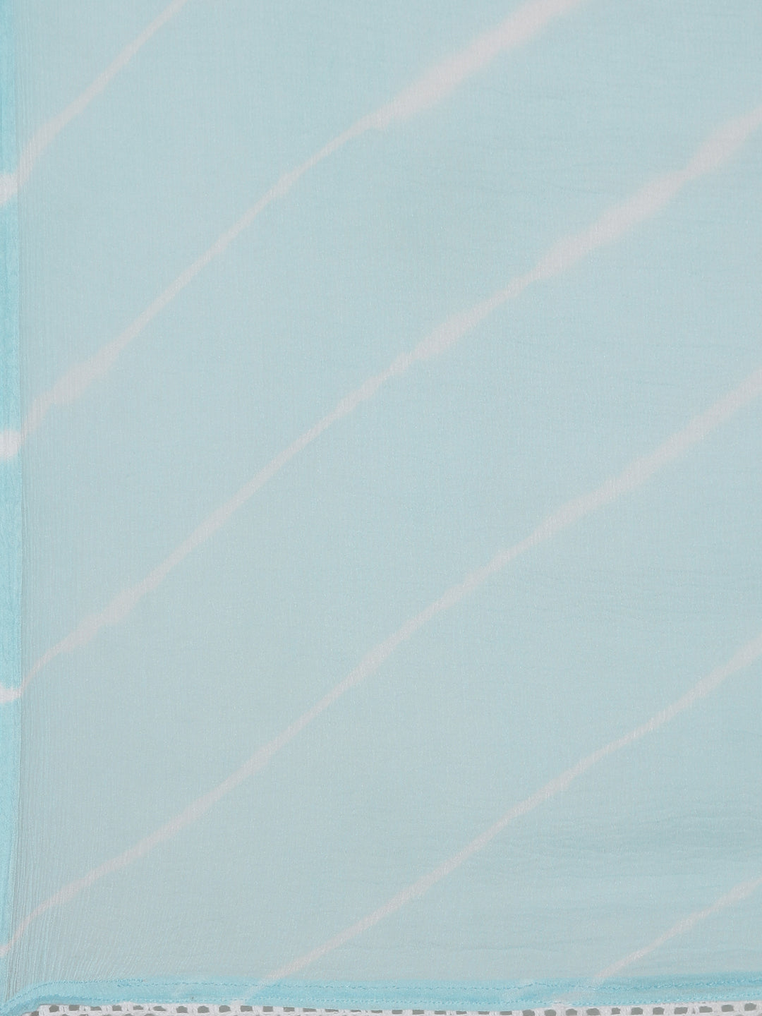 Neeru's Blue Regular Straight Embroidered Kurta And Trousers With Dupatta