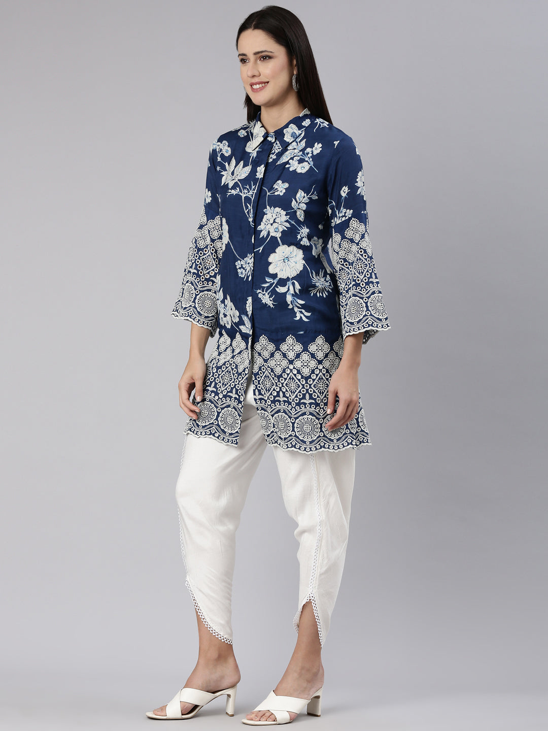 Experience The Luxurious Design And Sophistication Of Neeru's Blue Regular Straight Printed Kurta And Trousers. Crafted With Timeless Elegance And Graceful Detail, This Ensemble Is Sure To Elevate Any Look.