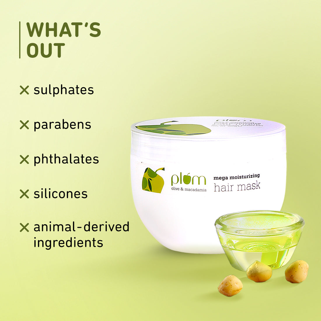 benefits of plum olive & macadamia mega moisturizing hair mask: