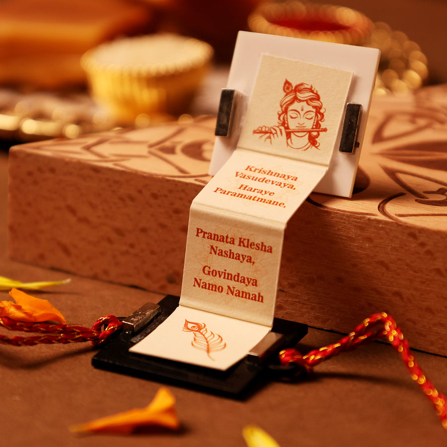 For every spiritual soul, this rakhi holds within it a sacred sloka, spreading blessings of harmony and protection.