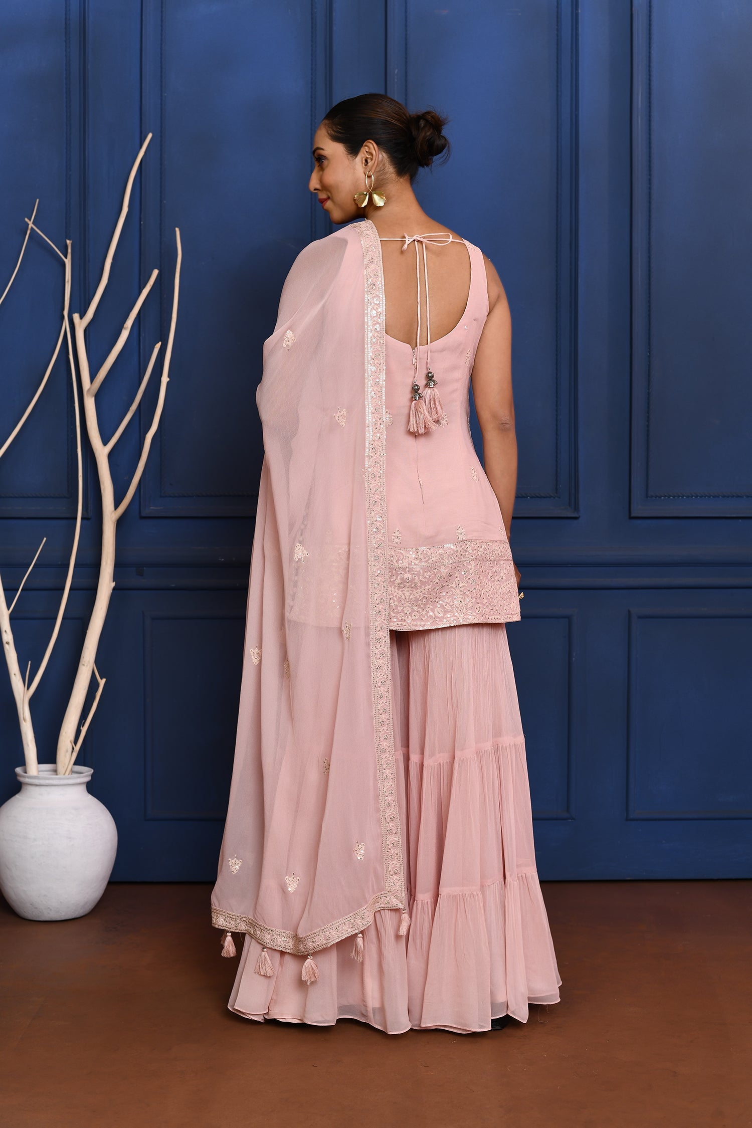 Pastel Soft Pink Embroidered Georgette Sharara Set