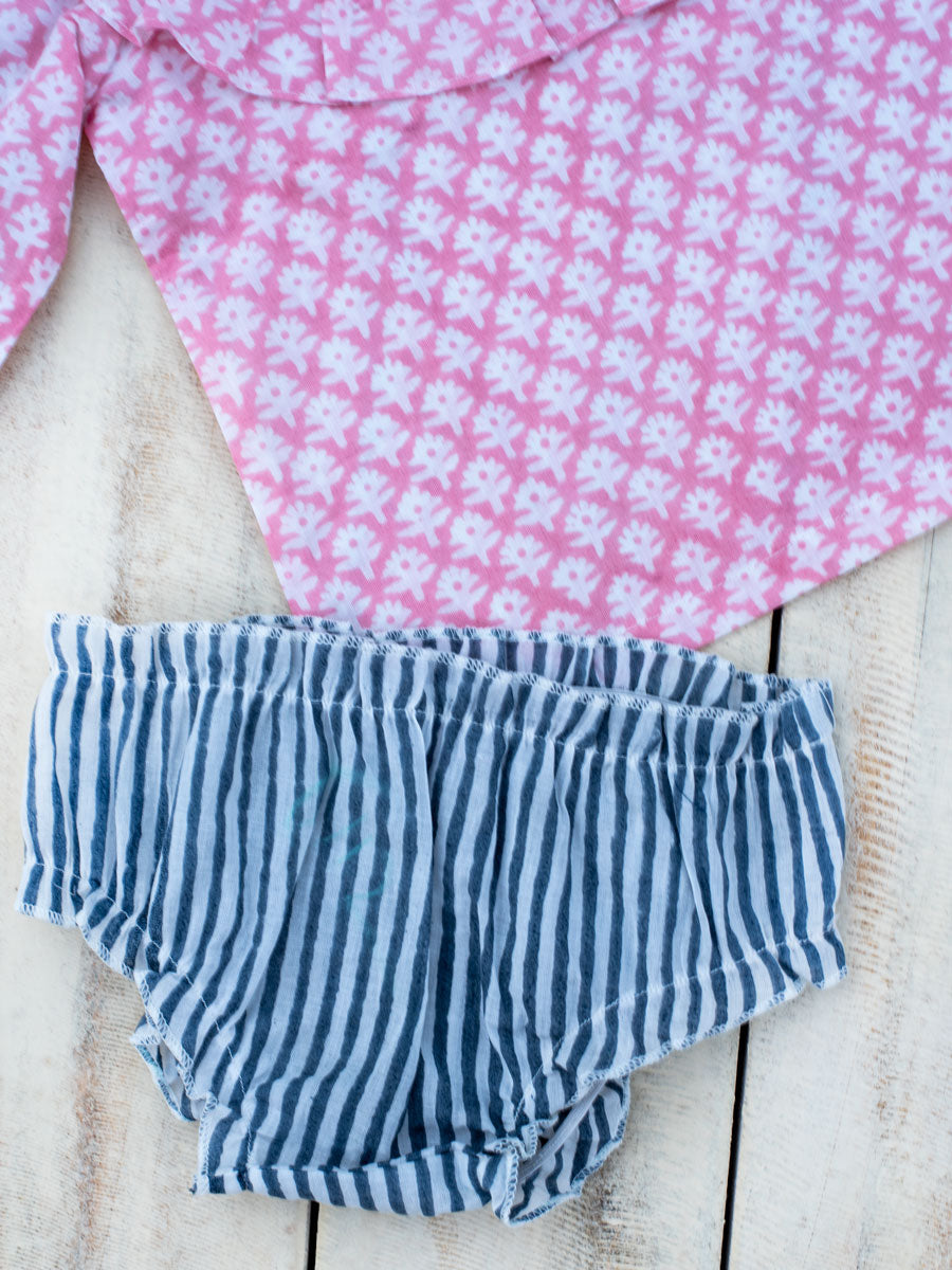 Pink Floral Block Printed Cotton Bloomer Set