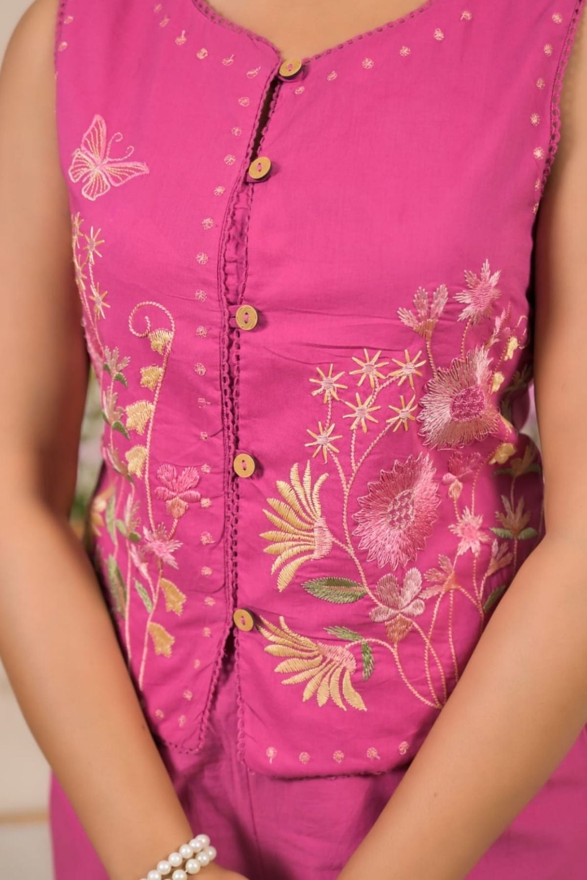 Pink Threadwork on Top & Pant Coord Set