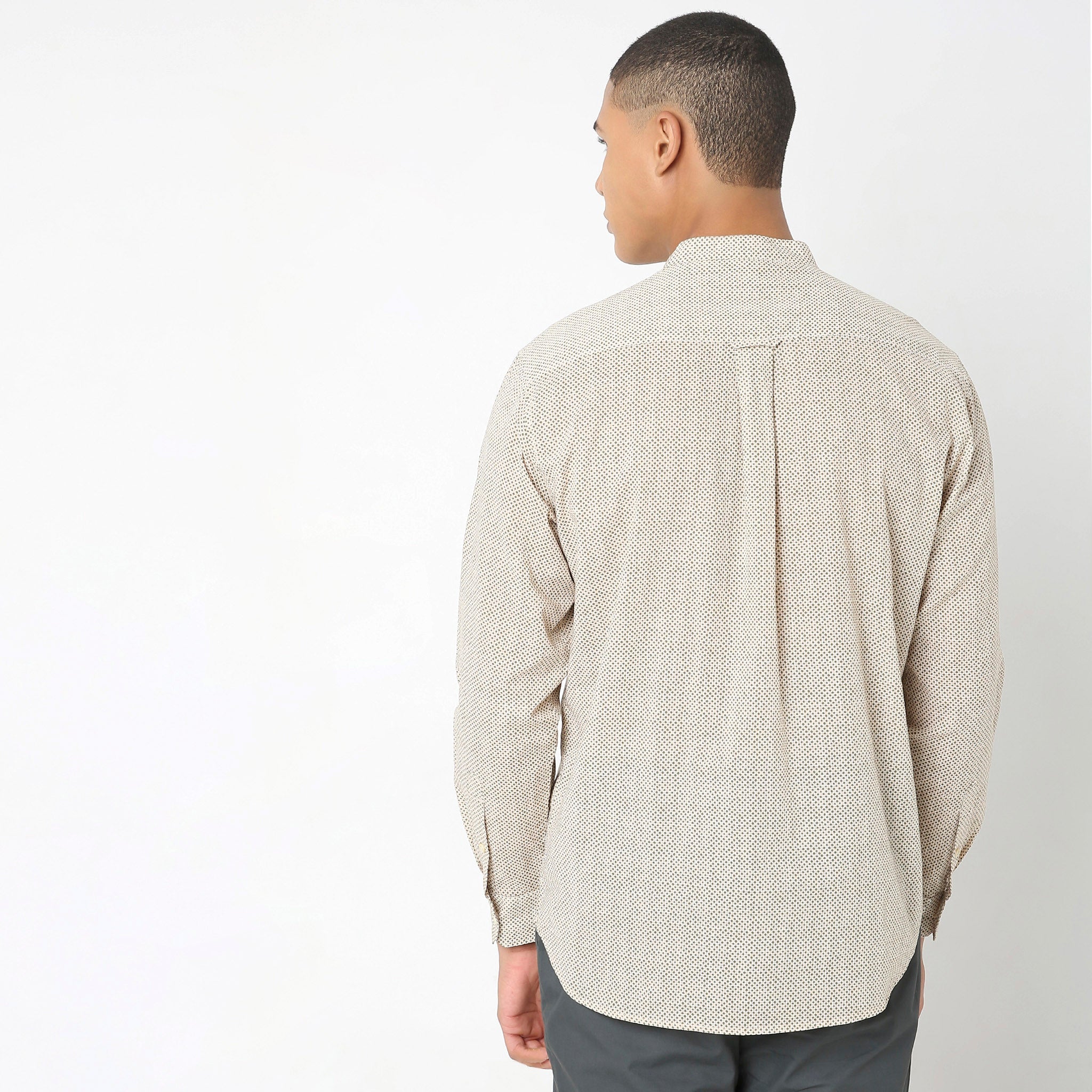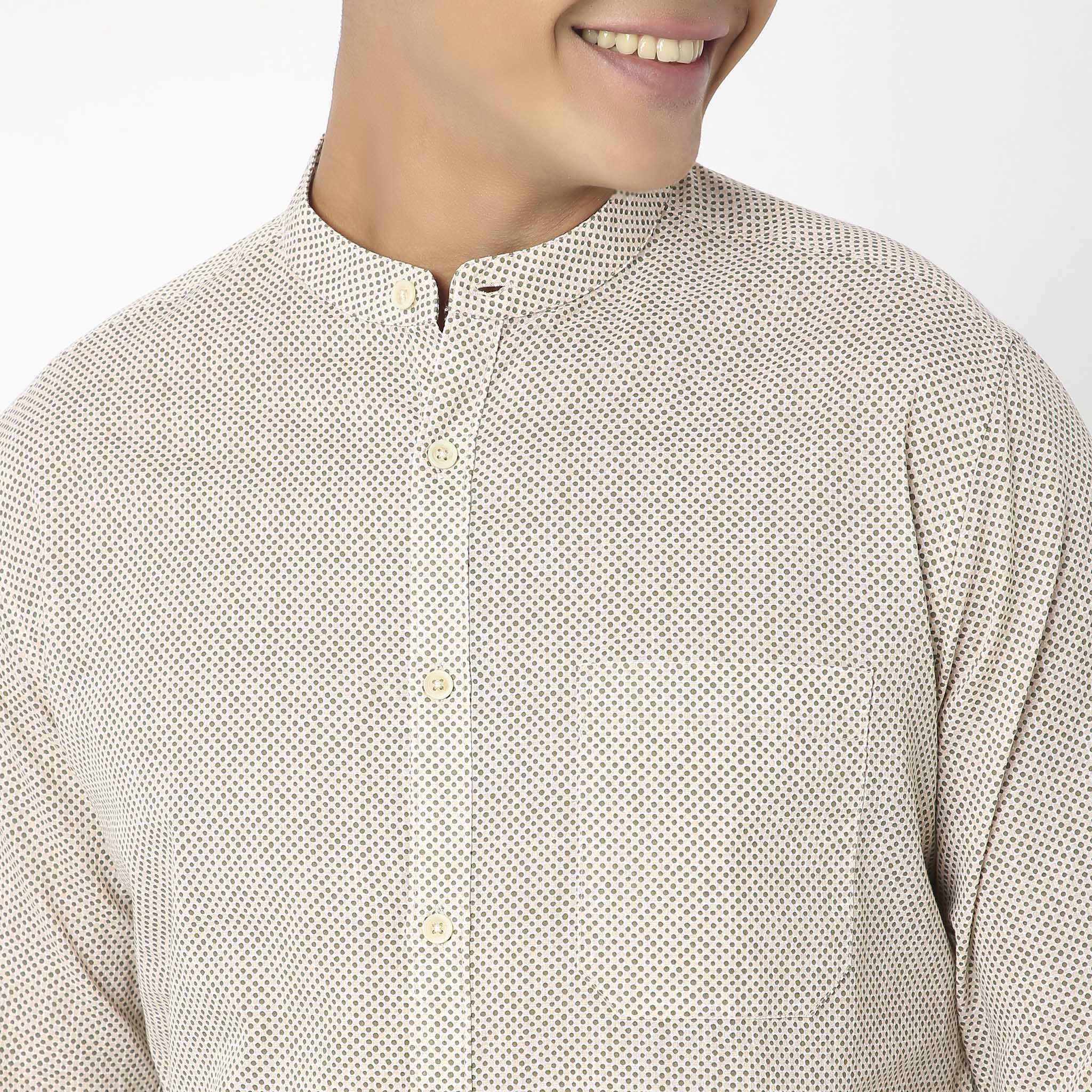This printed pattern shirt has a mandarin collar and full sleeve. Made from cotton, it is soft and comfortable to wear.