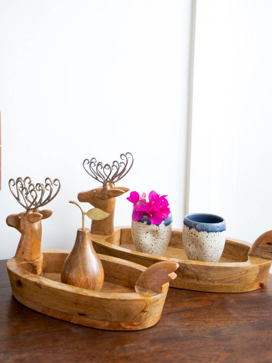 Entertaining has never been more fun! Our signature collection of wooden tableware is made with a fusion of Indian and contemporary European designs - a perfect combination of form and function. Crafted by Indian artisans, these pieces bring forth the natural beauty of the materials used, ensuring they never go out of style and making them the perfect accompaniment to any celebration, big or small. They also make for excellent gifts.