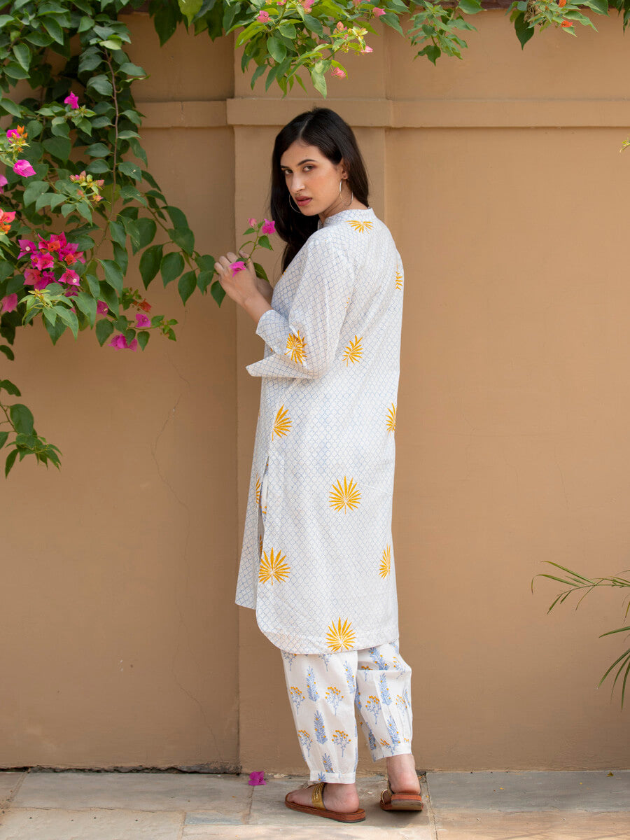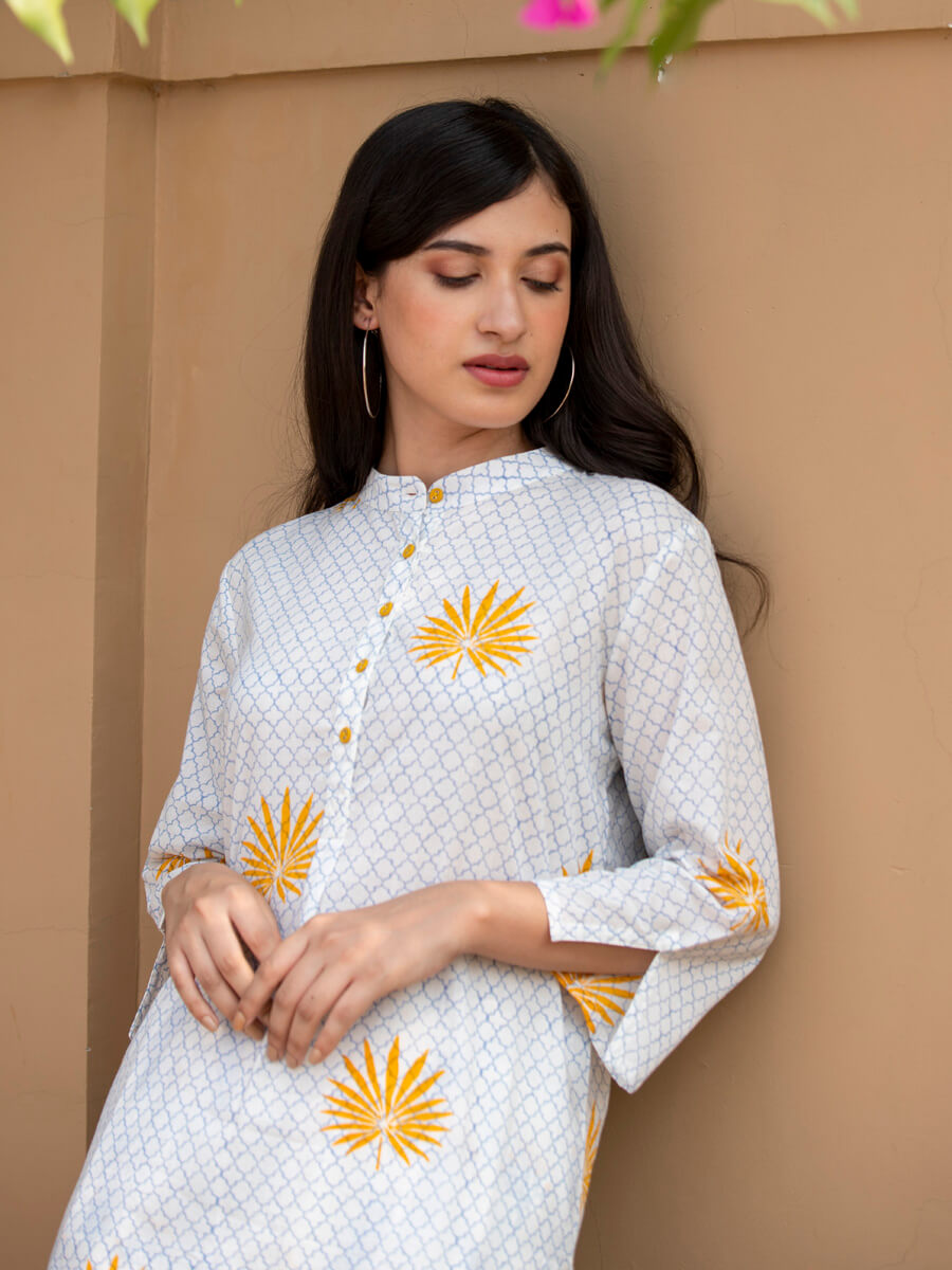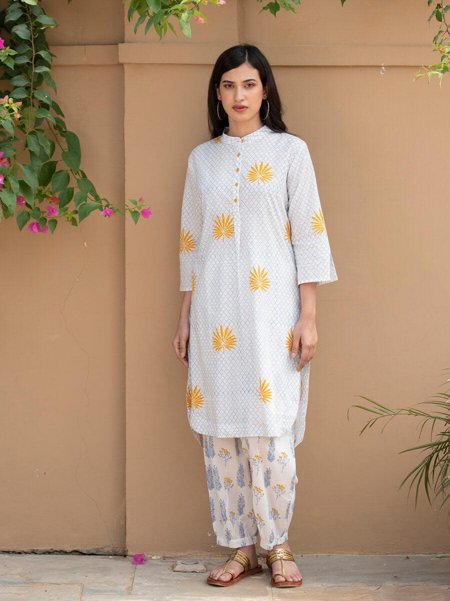 Ruhi Block Printed Cotton Mid Length Kurta