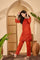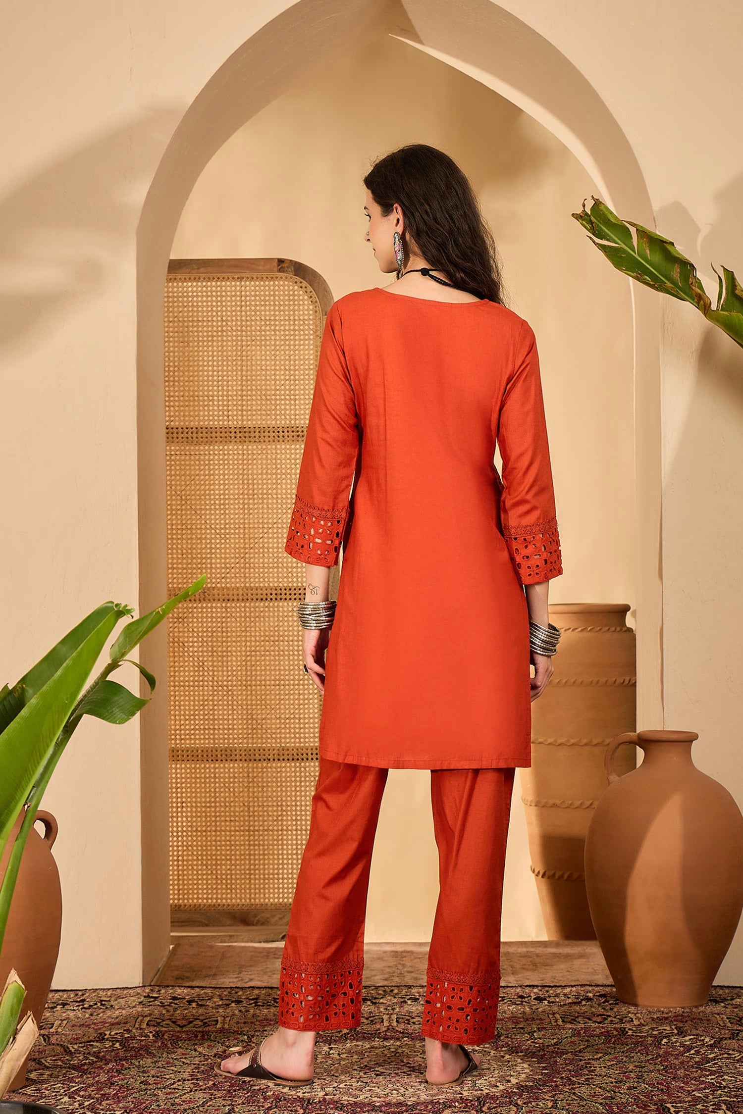 Rust Orange Cotton Thread Work Kurta Set