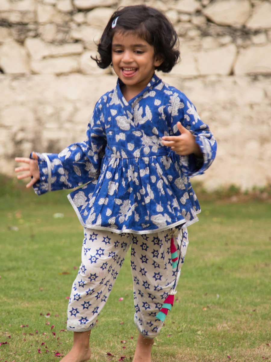 Presenting beautiful ensembles for our little customers. Keeping true to our style and quality commitment, each piece is handcrafted in certified organic cotton. Hand block printed with traditional butis, embellished with fine lace and designed to be super comfortable; our festive collection makes kids sparkle!