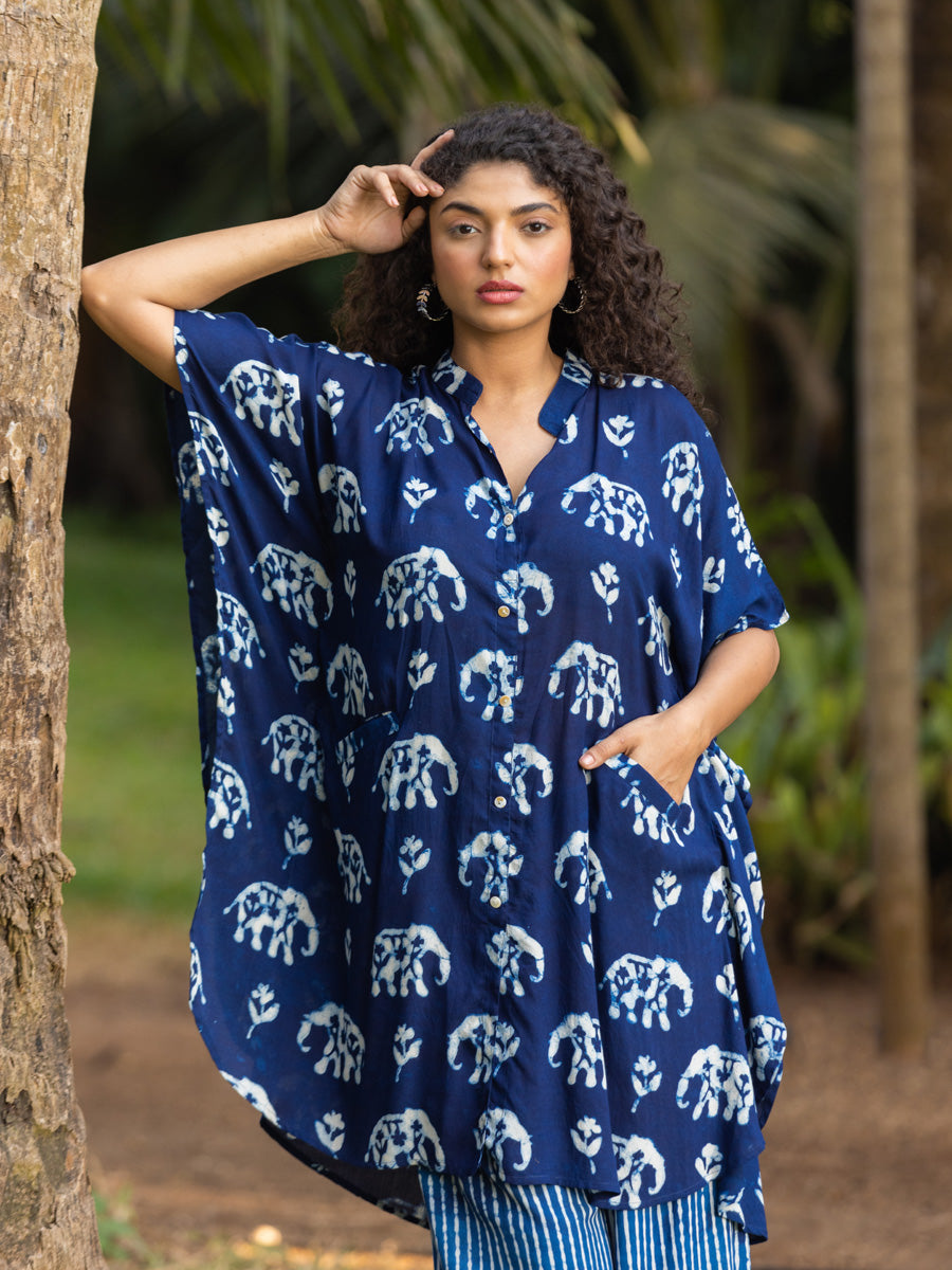- Shirt dress: Handcrafted using dabu dyeing technique on flowy modal | Comes with 2 pockets
