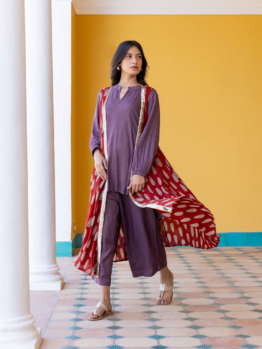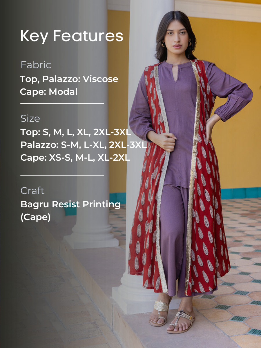 - Set includes: Asymmetrical top, palazzo pants and cape