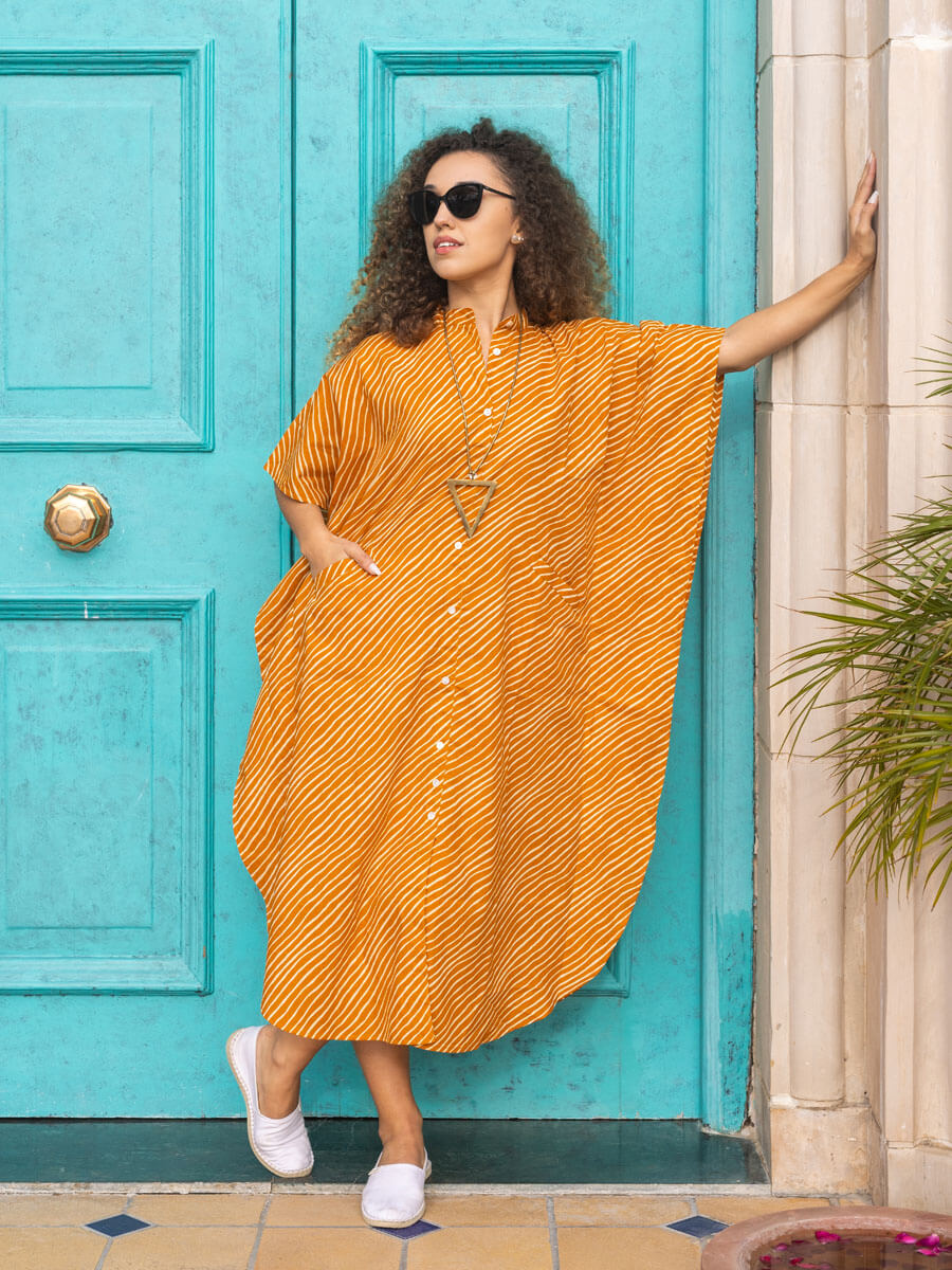 Sunset and Wine Cotton Kaftan Shirt Dress