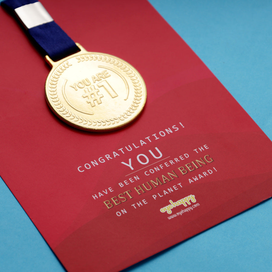Best Human Medal Card - For the sweetest and kindest woman you know. Give that cute person the ultimate compliment with our Best Human Medal Card. This sweet and adorable card comes with a medal (yes, a real medal) that certifies her as the Best Human Being on the planet earth. Go ahead, make her day!