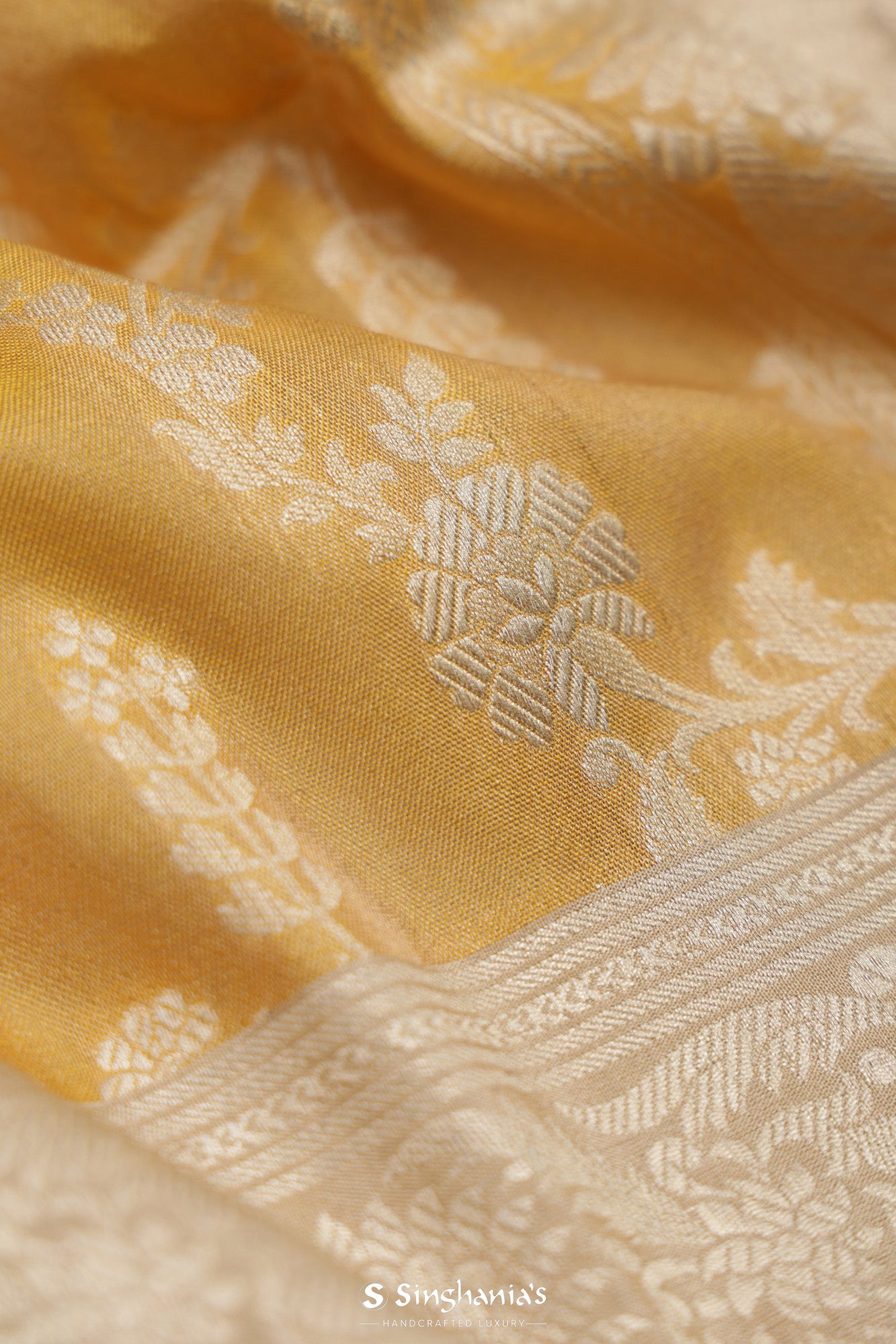Gold Banarasi Silk Saree With Floral Jaal