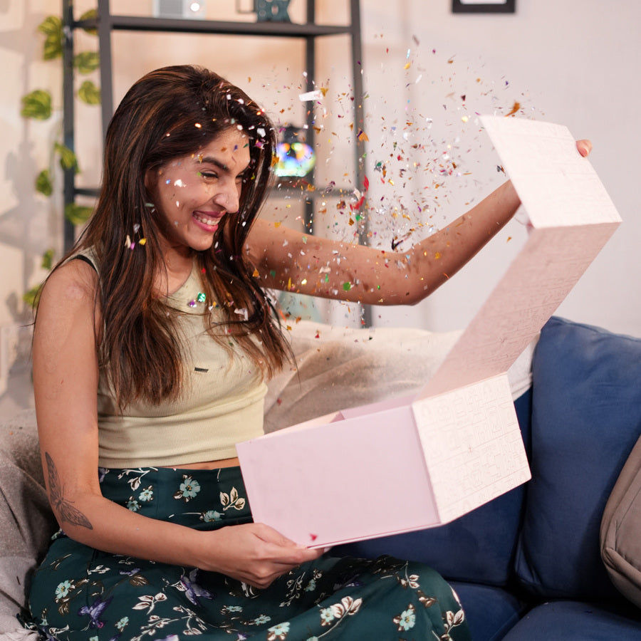 Valentine’s Week just got special: 8 surprises, glitter shower, and a special message in your own voice  - all in one hamper. Celebrate the 8 days of Valentine’s with an adorable valentine gift hamper that showers your valentine with glitter and plays a loving message as soon as they open the hamper.All you have to do is send us an audio message and we will record it for you. And in case, you can't, we will add the sweetest song/message for your valentine on our own.