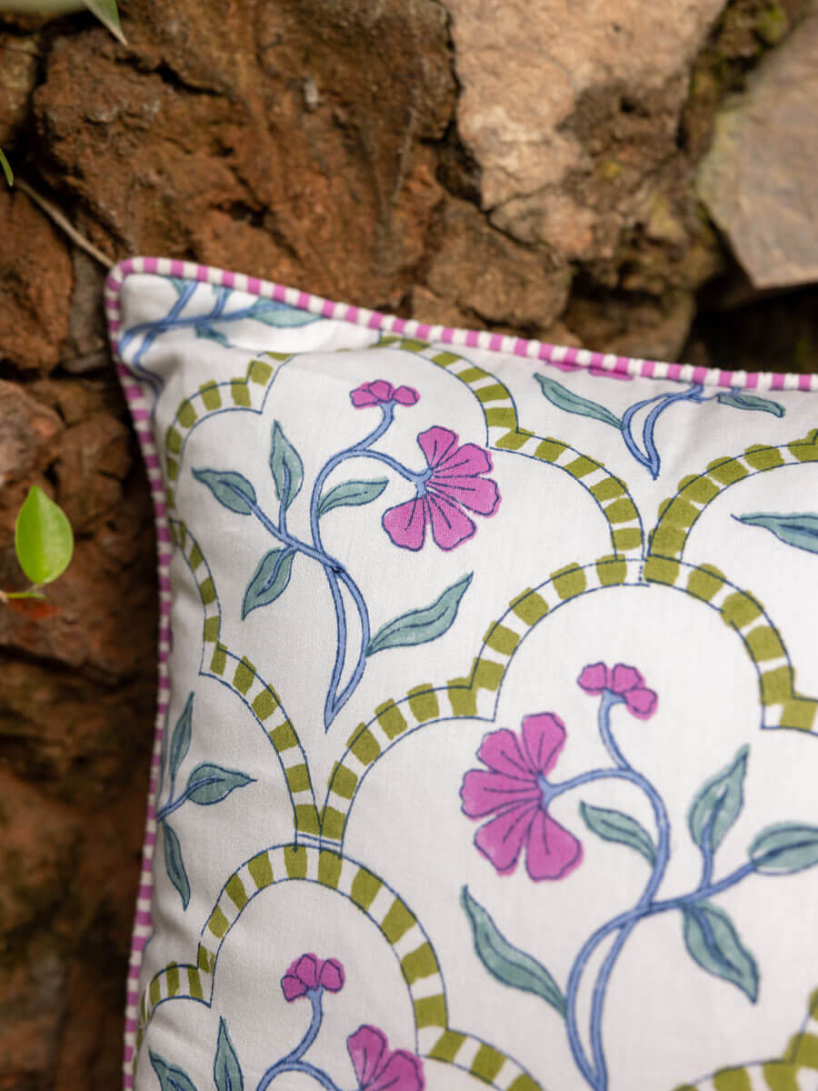 Vartika Hand Block Printed Cotton Cushion Cover - 18 Inch