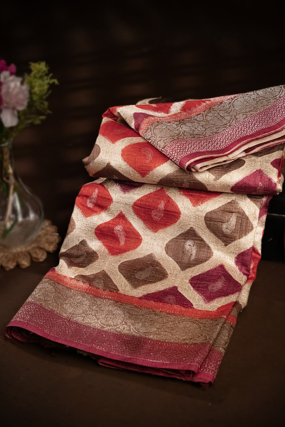 Make a statement at your next event with this beautiful multi-colour colored Kalamandir tussar saree.