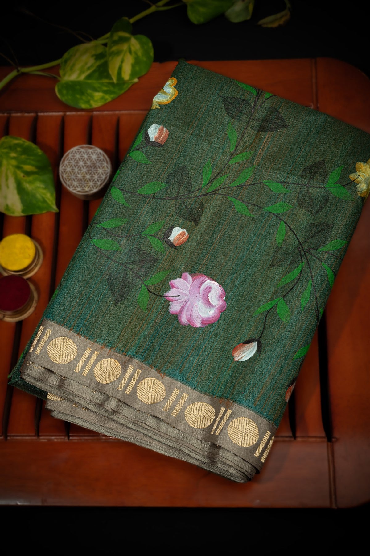Varamahalakshmi Olive Green & Grey Fancy Printed Saree