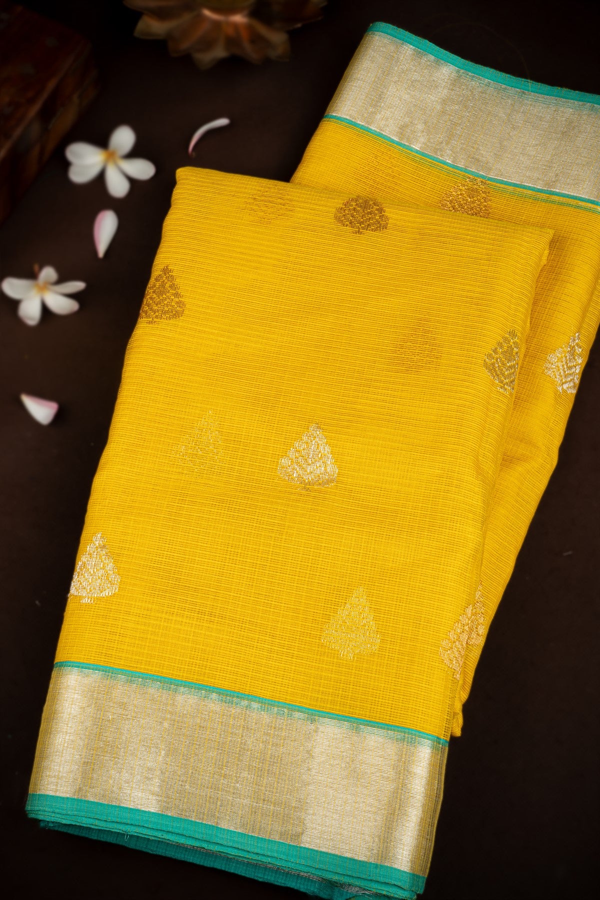Varamahalakshmi Yellow & Rama Green Zari Kota Buttis Saree