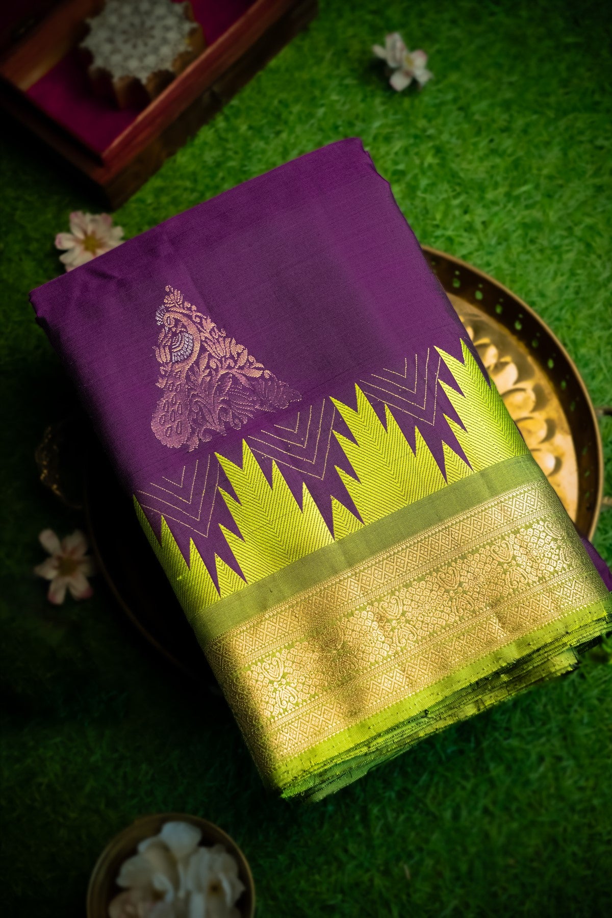 Varamahalakshmi Purple & Olive Green Coimbatore Motifs Saree