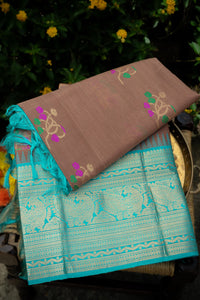 Varamahalakshmi Rose Pink and Brown & Sea Green Kuppadam Motifs Saree