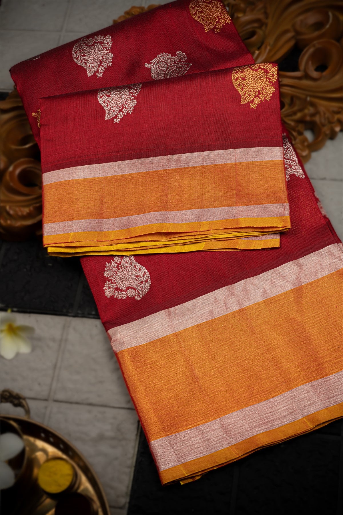 Varamahalakshmi Maroon & Silver Uppada Motifs Saree