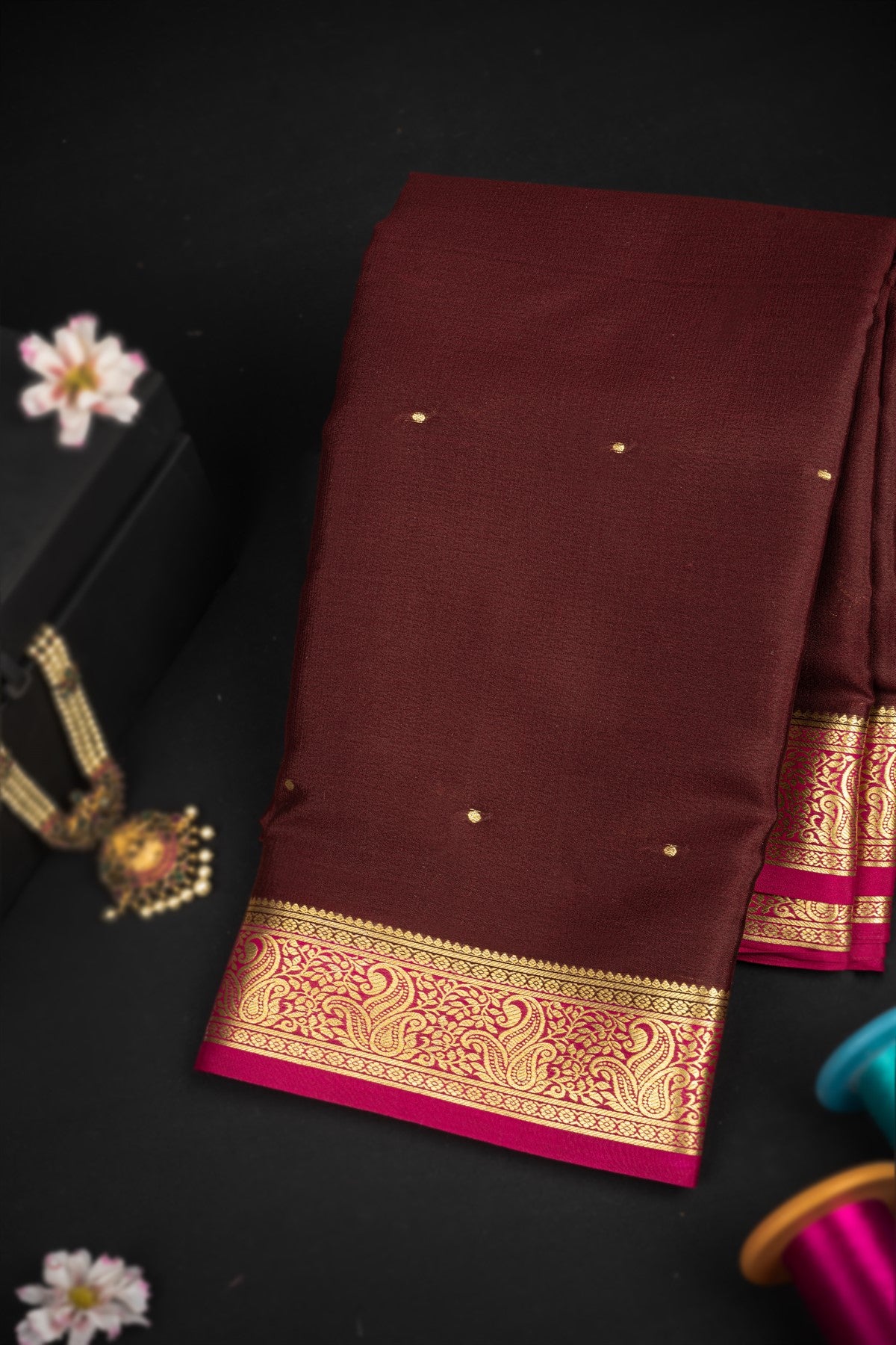 Varamahalakshmi Dark Brown & Pink Mysore Buttis Saree