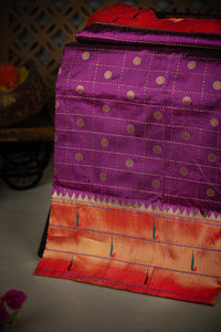 Varamahalakshmi Magenta & Gold and Red Paithani Checks And Buttis Saree