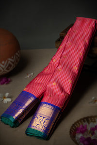 Varamahalakshmi Red and Pink & Royal Blue Gadwal Checks And Buttis Saree