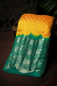 Varamahalakshmi Mustard & Rama Green Bandhani Bandhani Saree